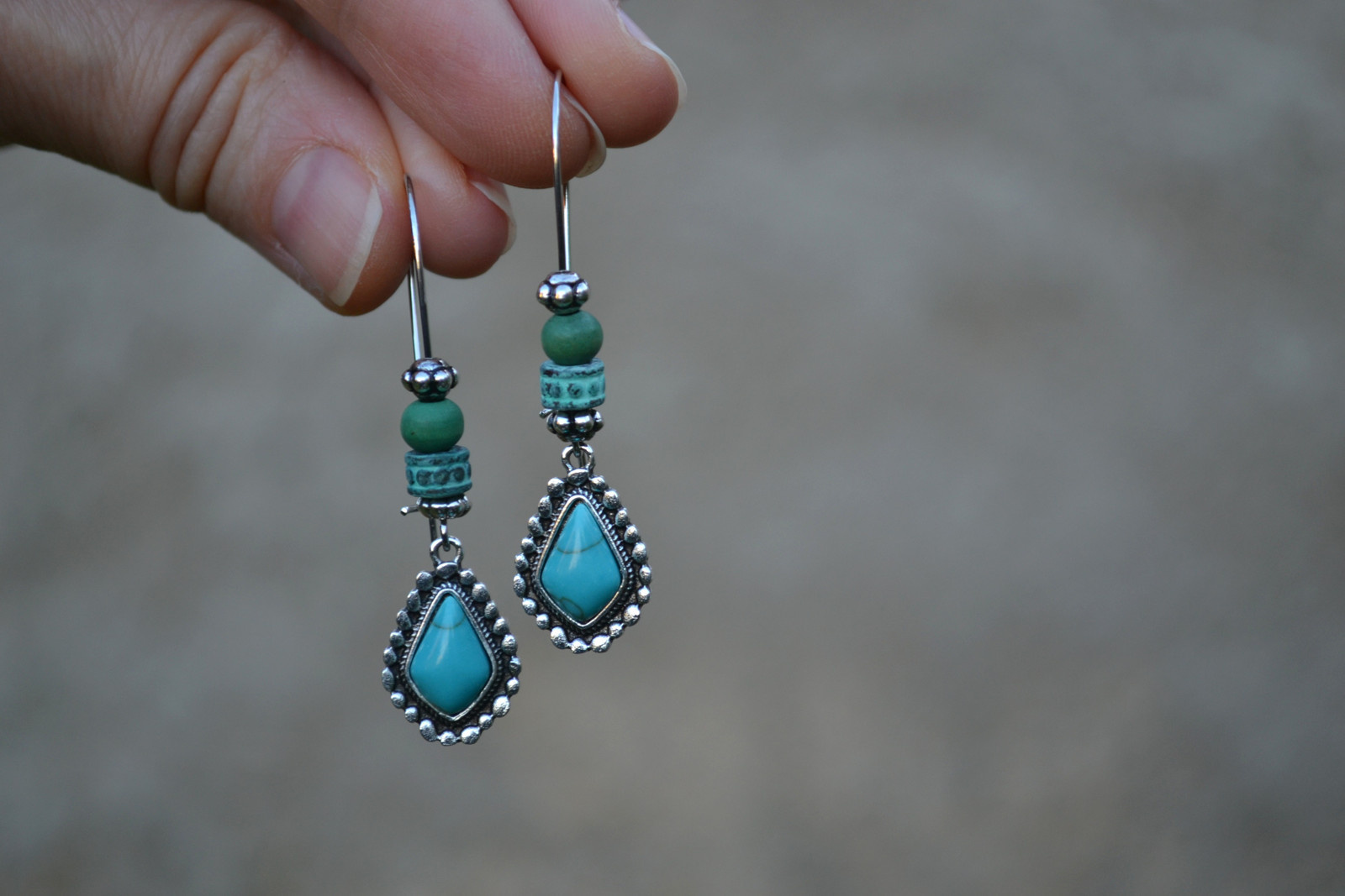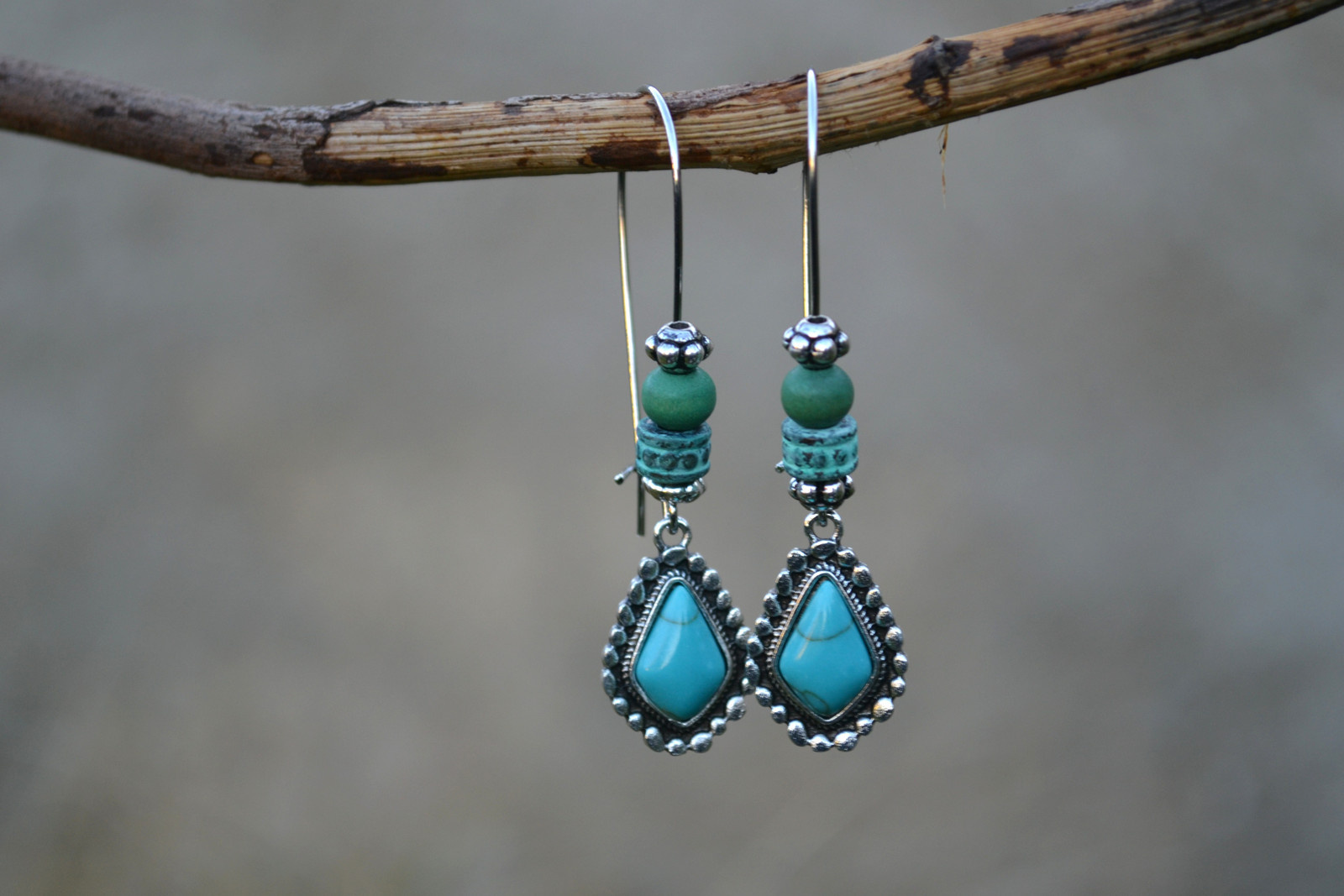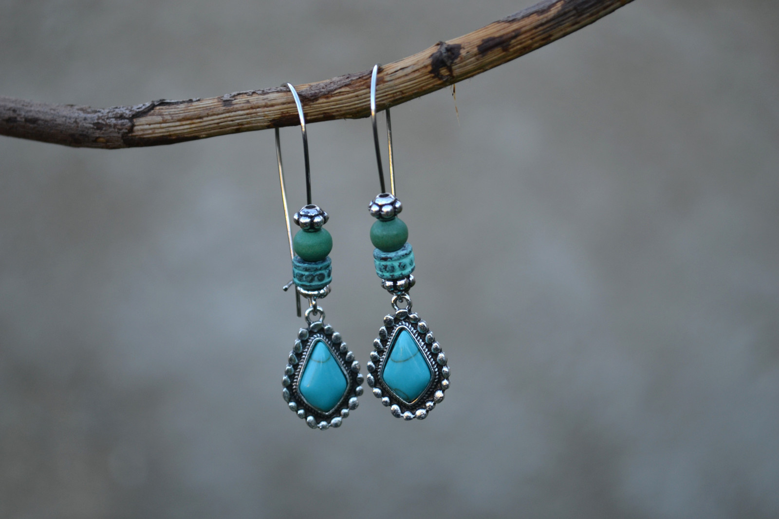 earrings with pendants in combination with beads on a long hook