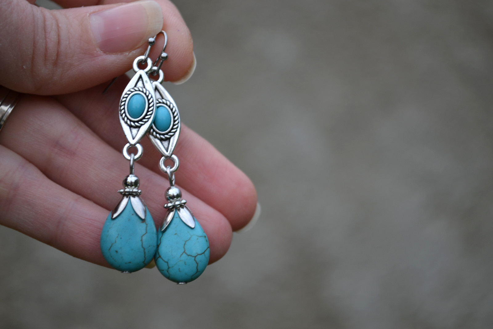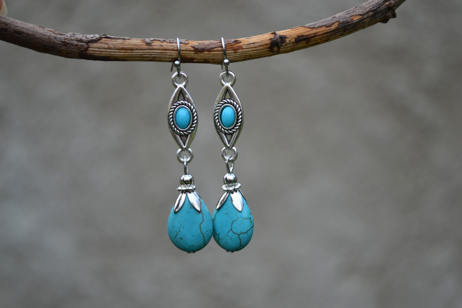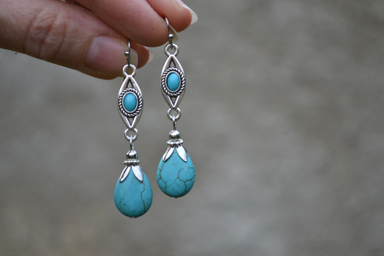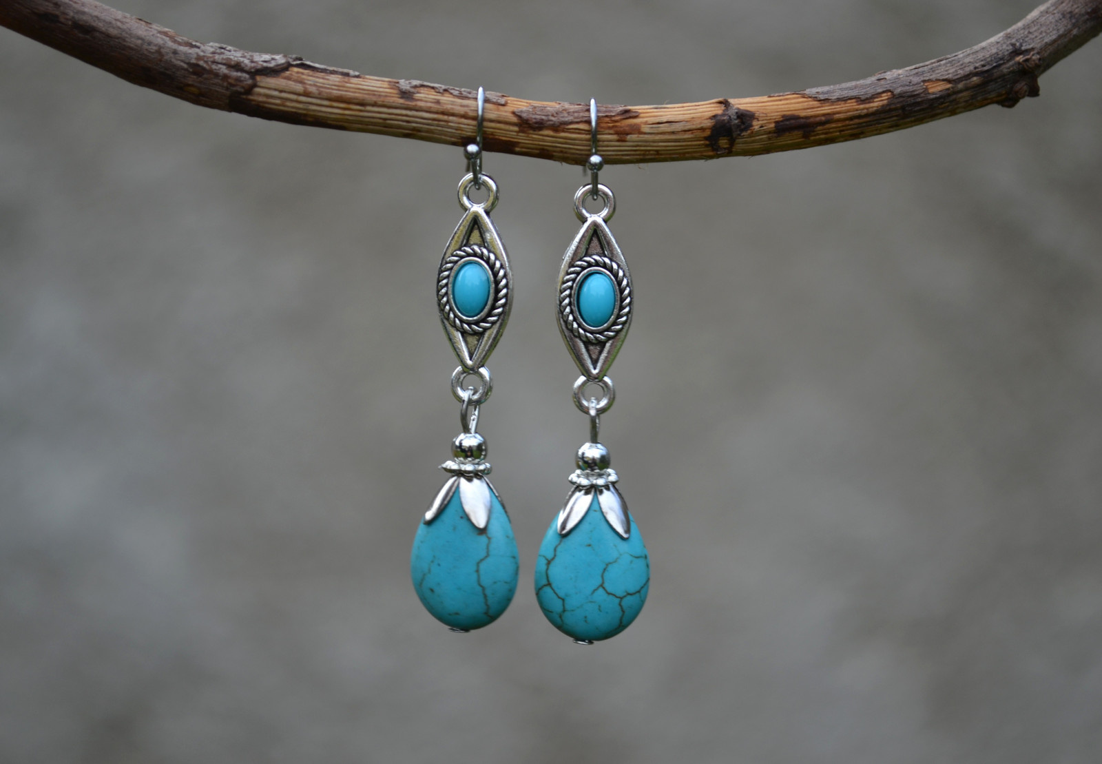 kolczyki z tyrkenitową kroplą w komplecie z elementami i koralikami