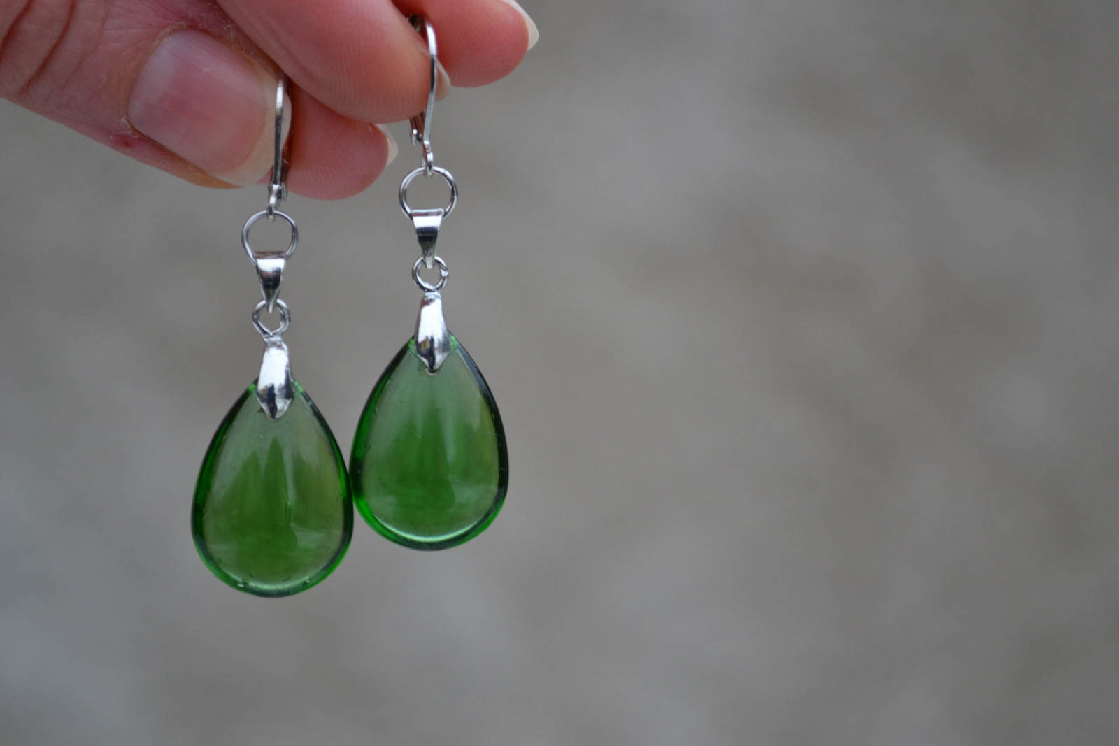 Eleganckie, efektowne kolczyki w odcieniu zieleni