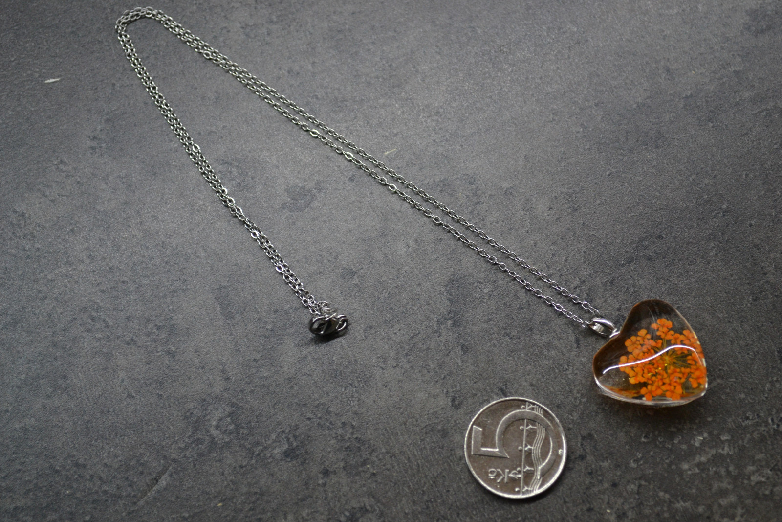 jemný řetízek (délka 50 cm včetně zapínání) s přívěskem ve tvaru srdce