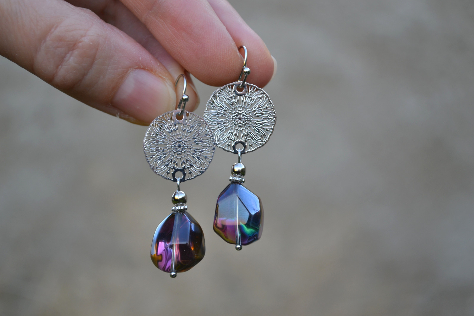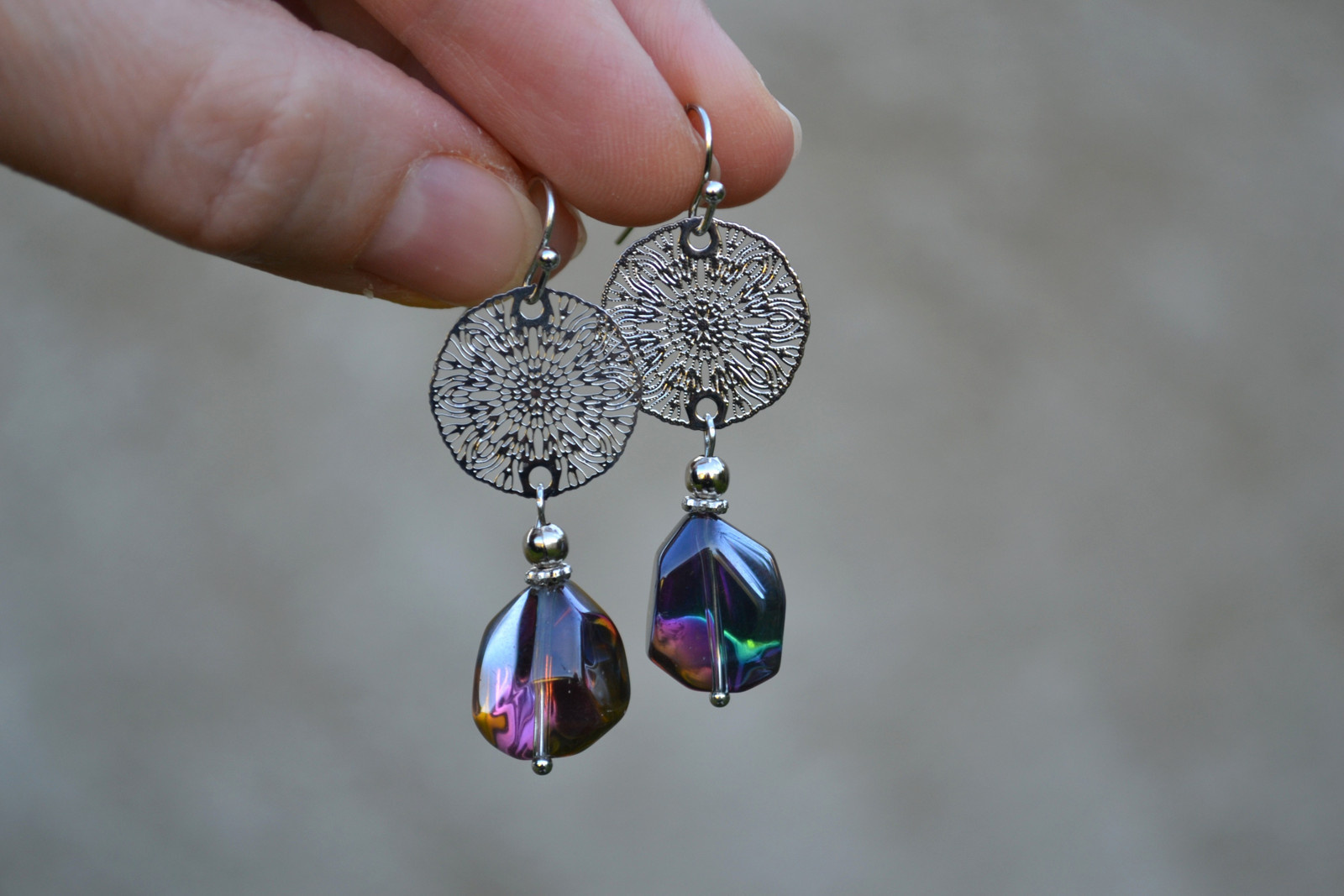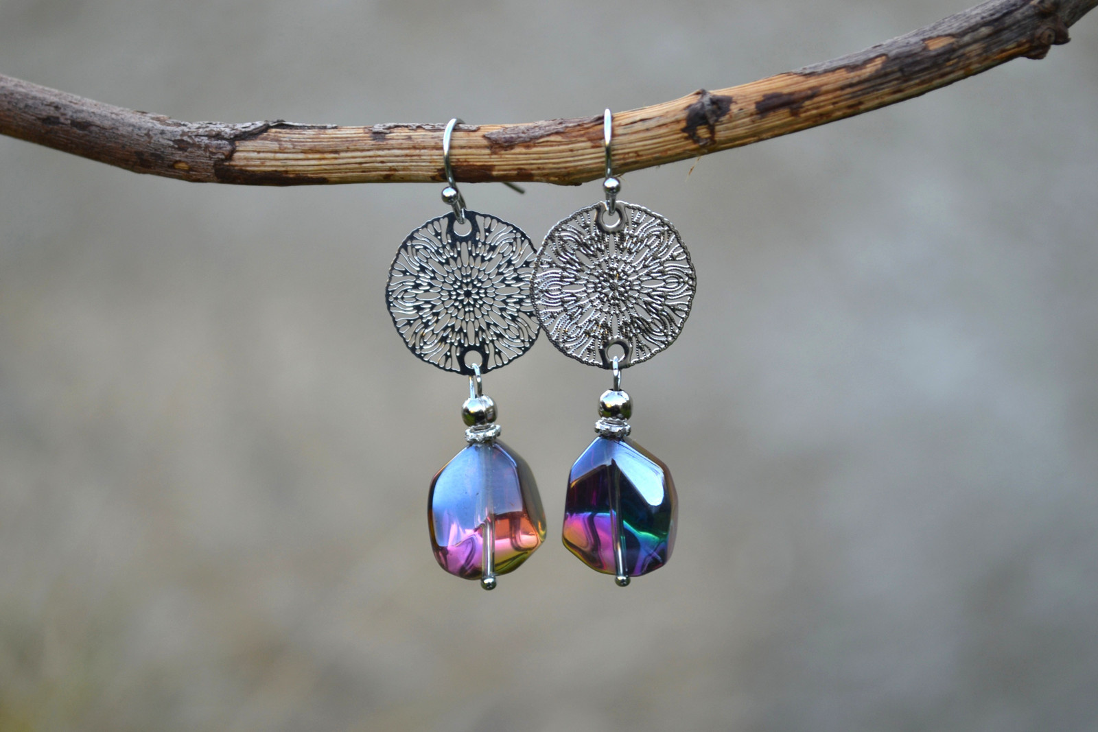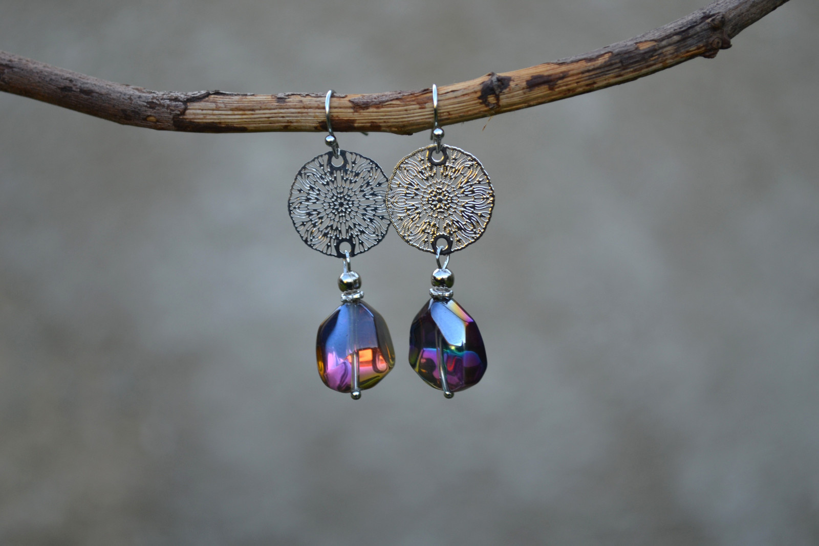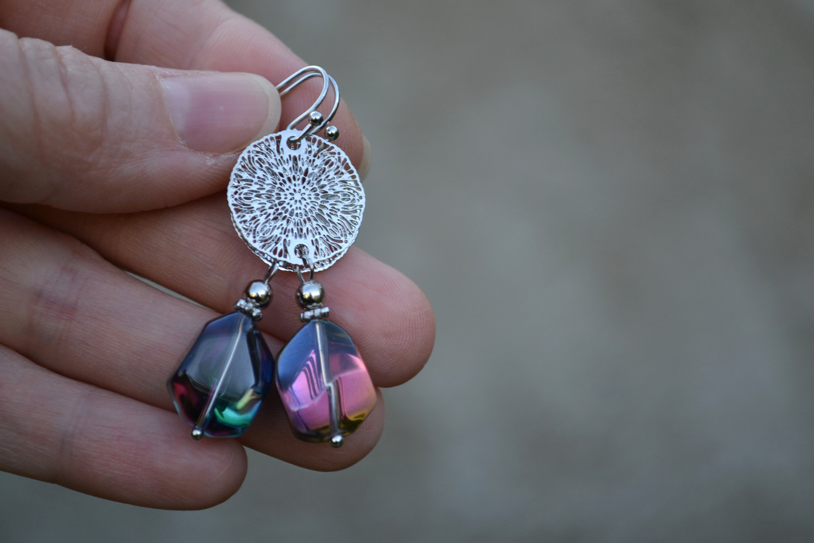 náušnice s působivými korálky doplněnými zdobeným přívěskem