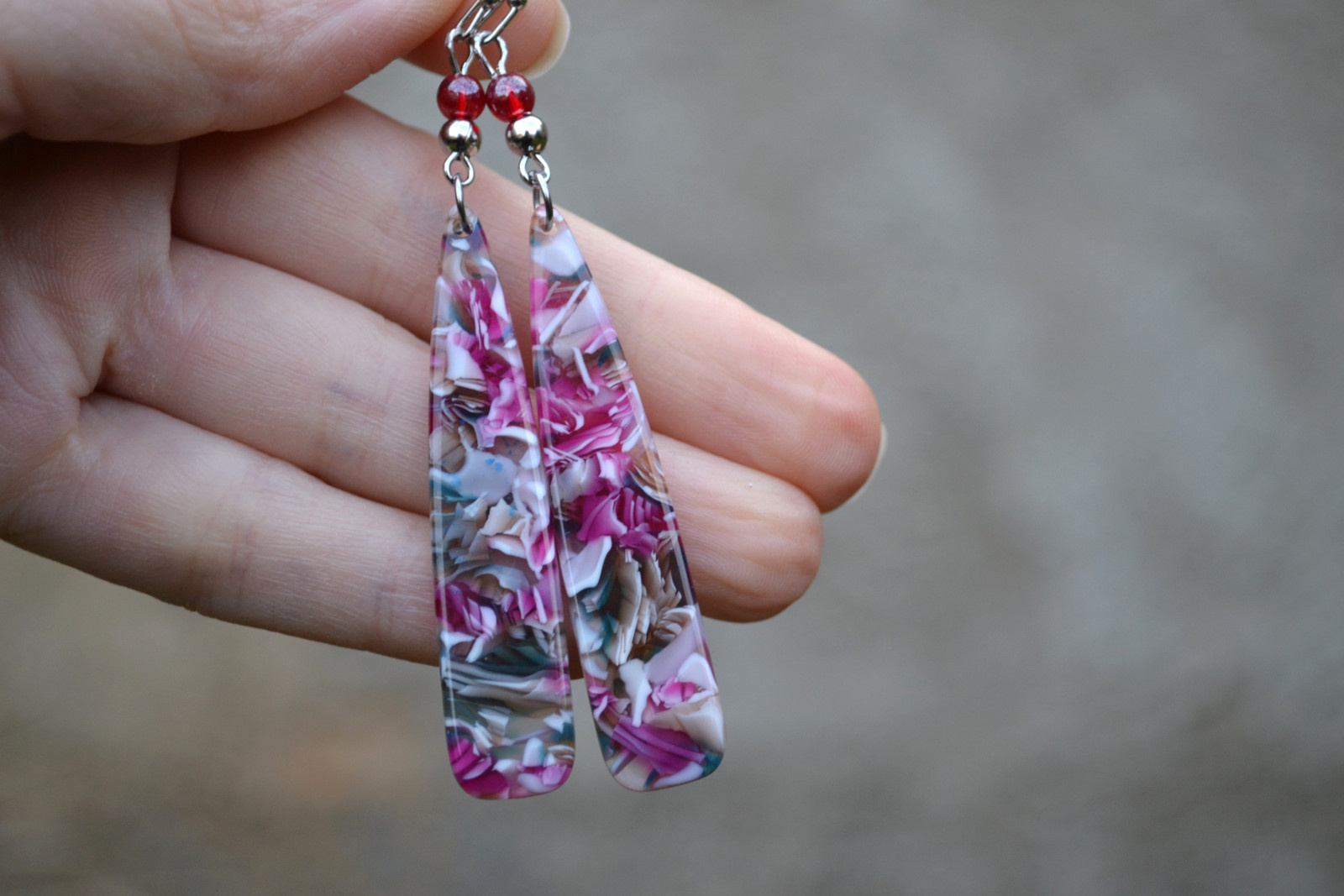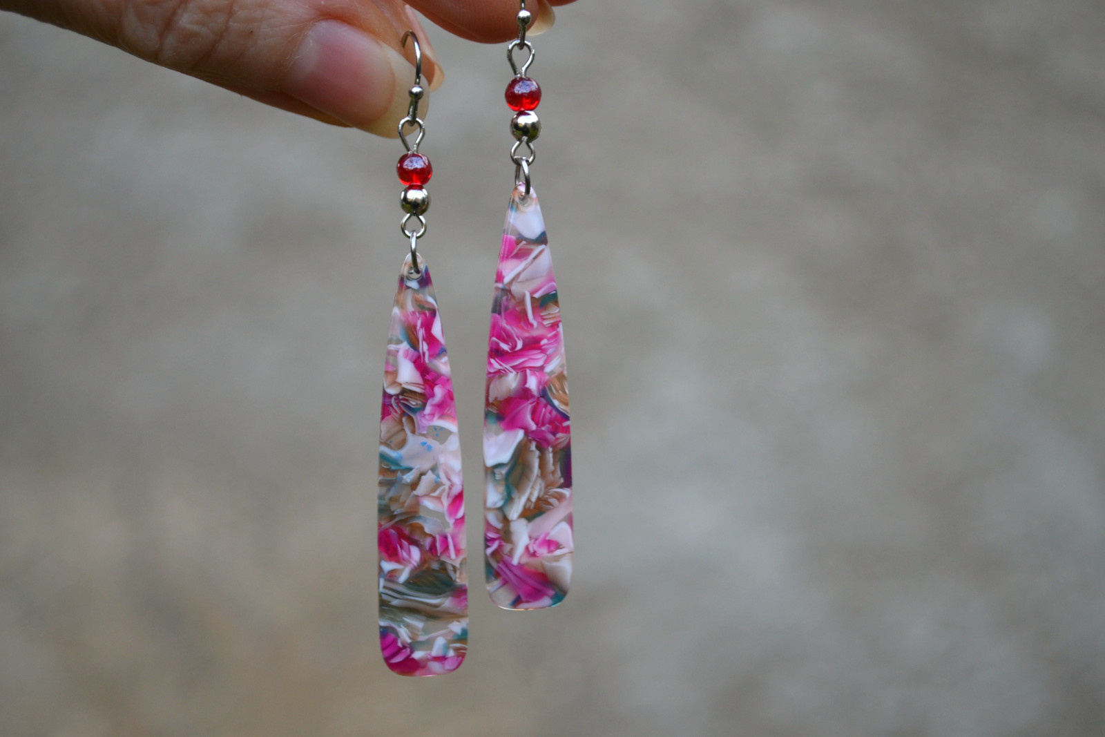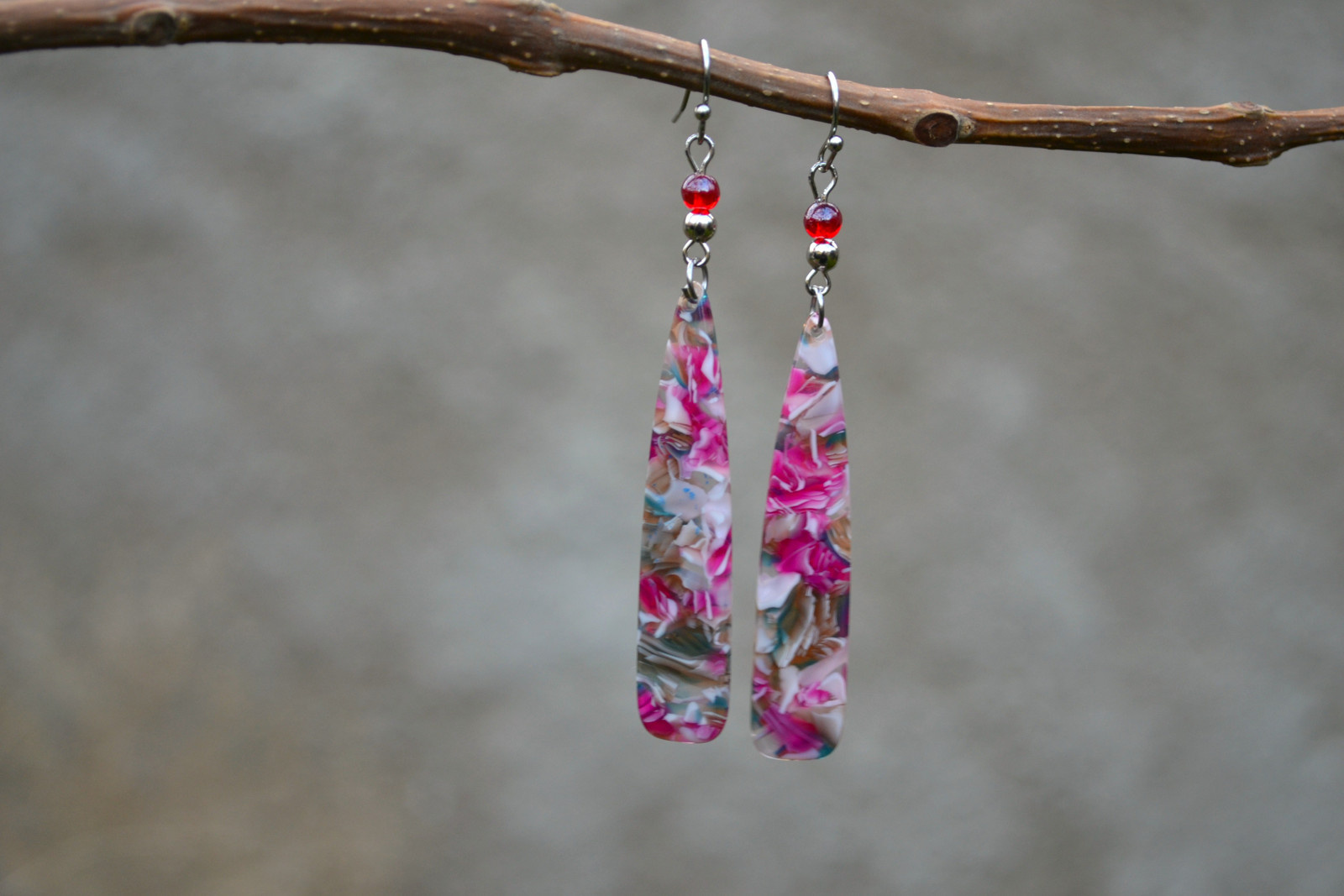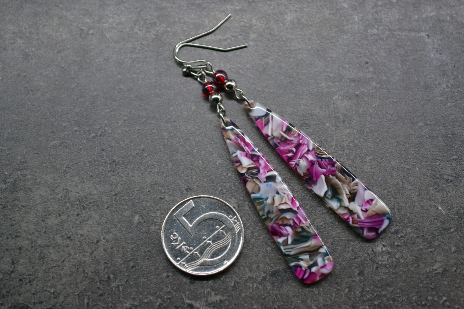 náušnice s krásným, mozaikovým přívěskem (lehoučký, každý je svým originálem) doplněným korálkem