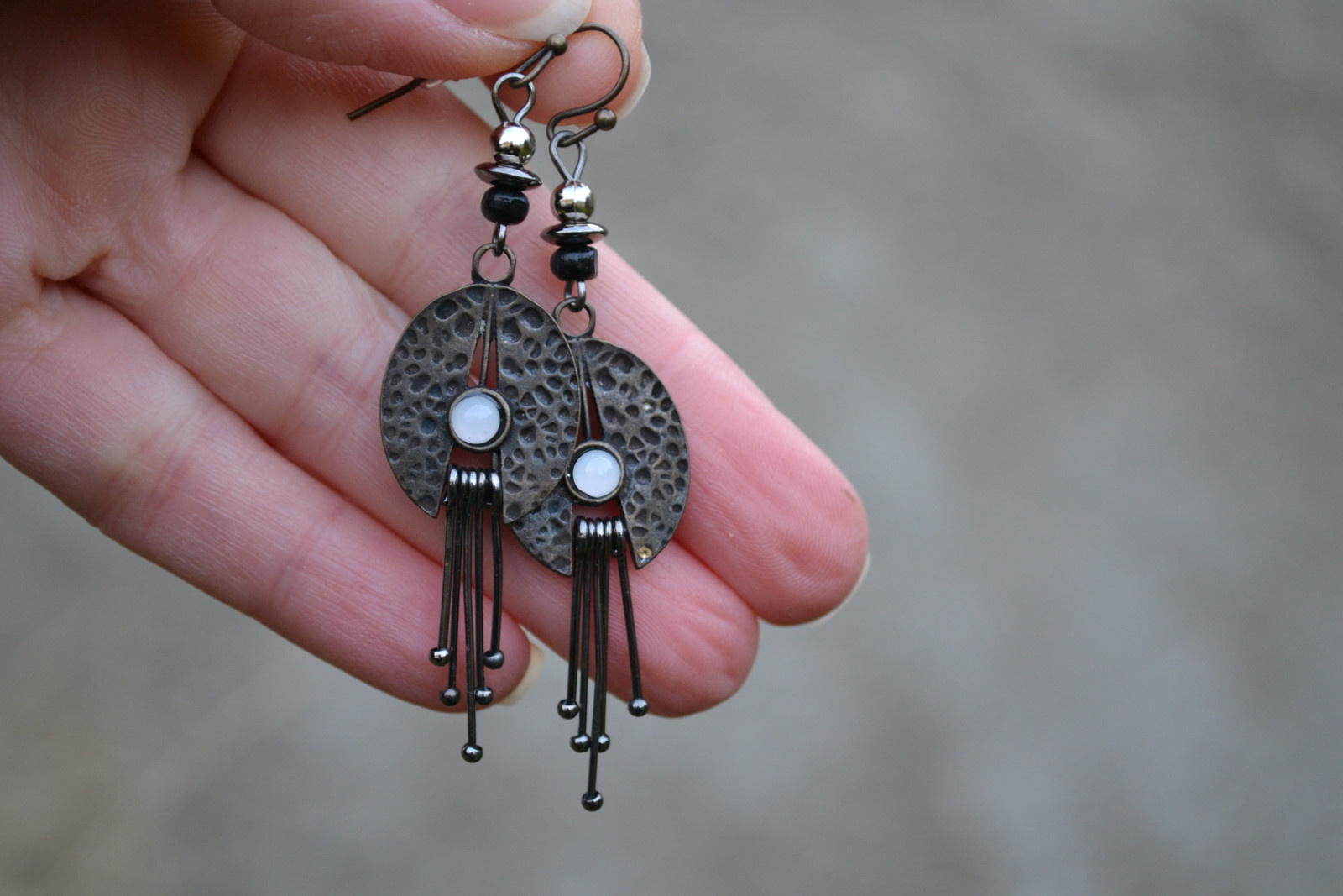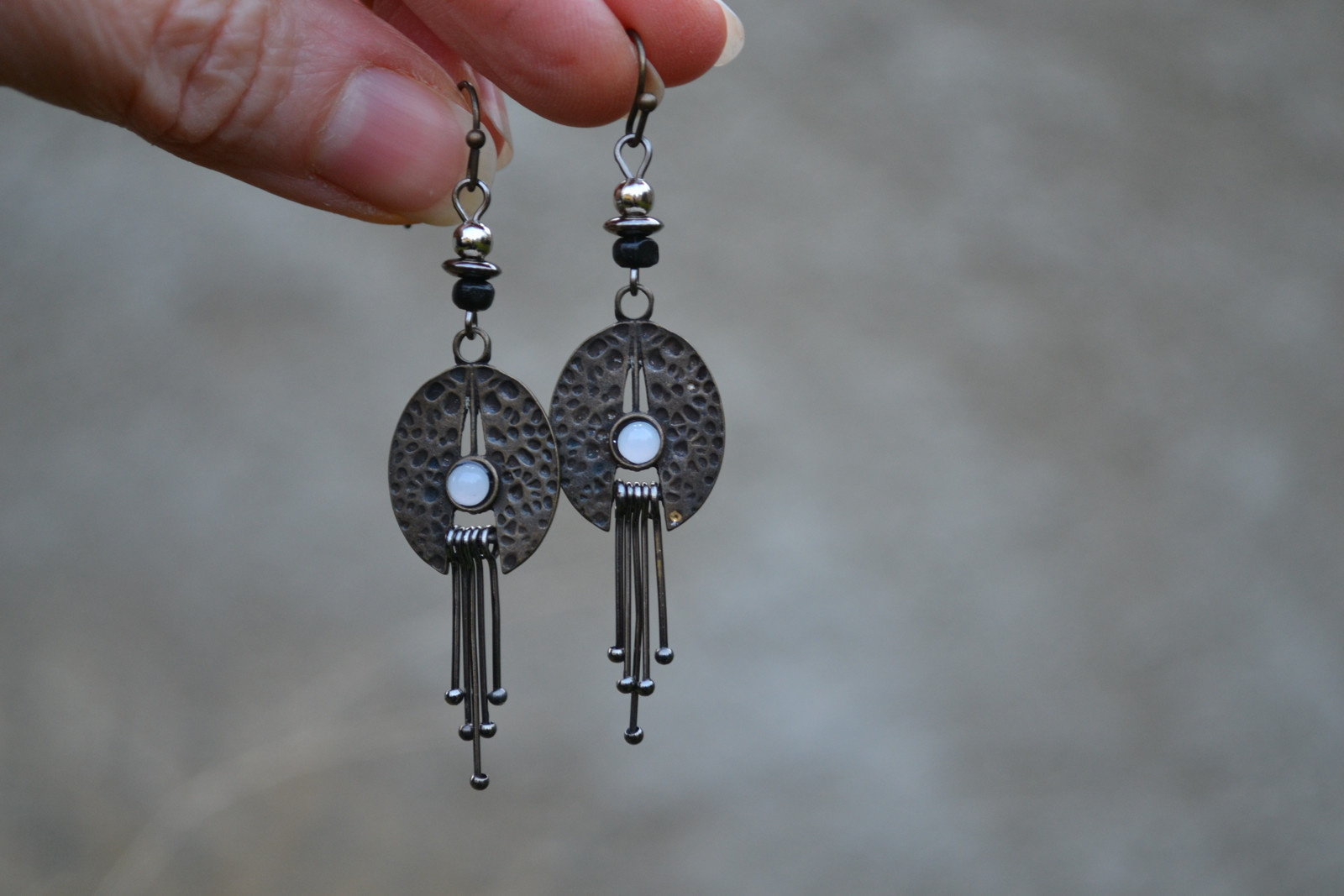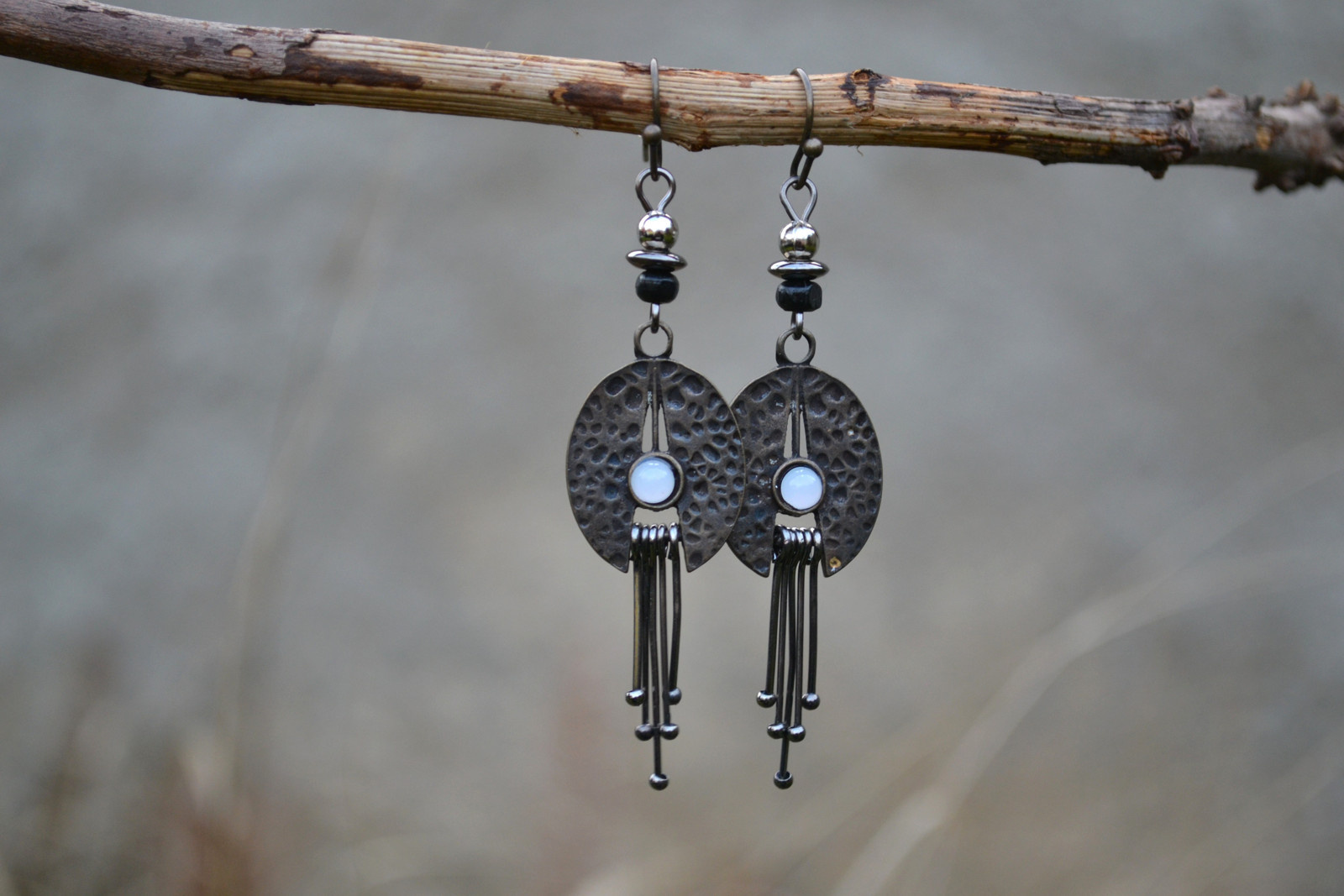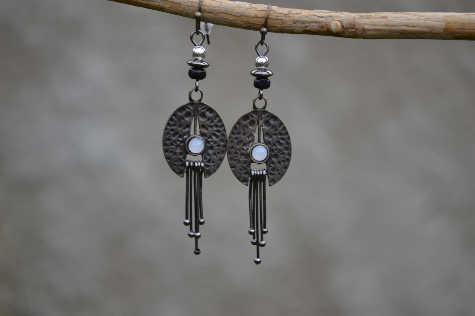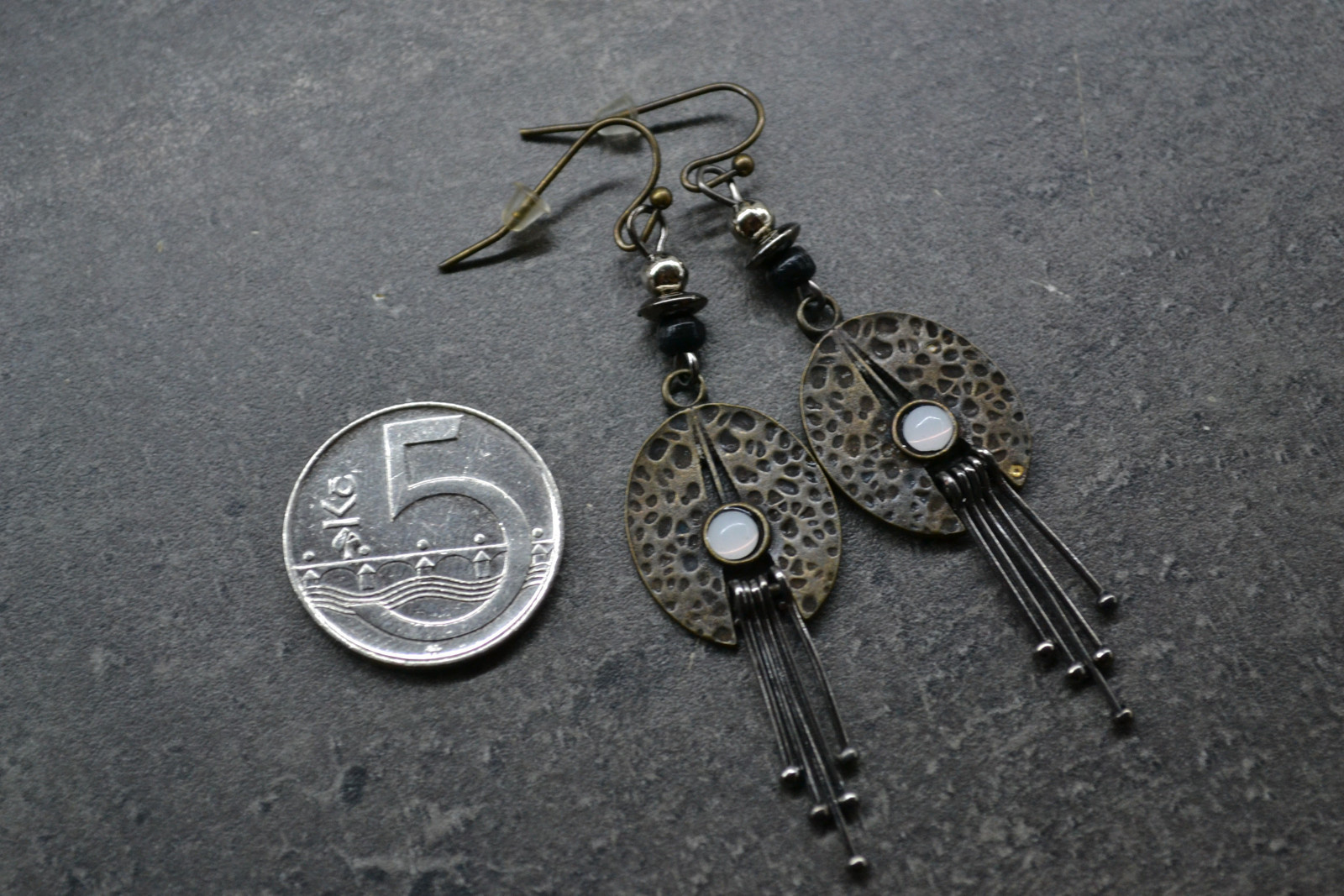 náušnice s působivým etno přívěskem s kabošonkem doplněným dřevěnými a kovovými korálky