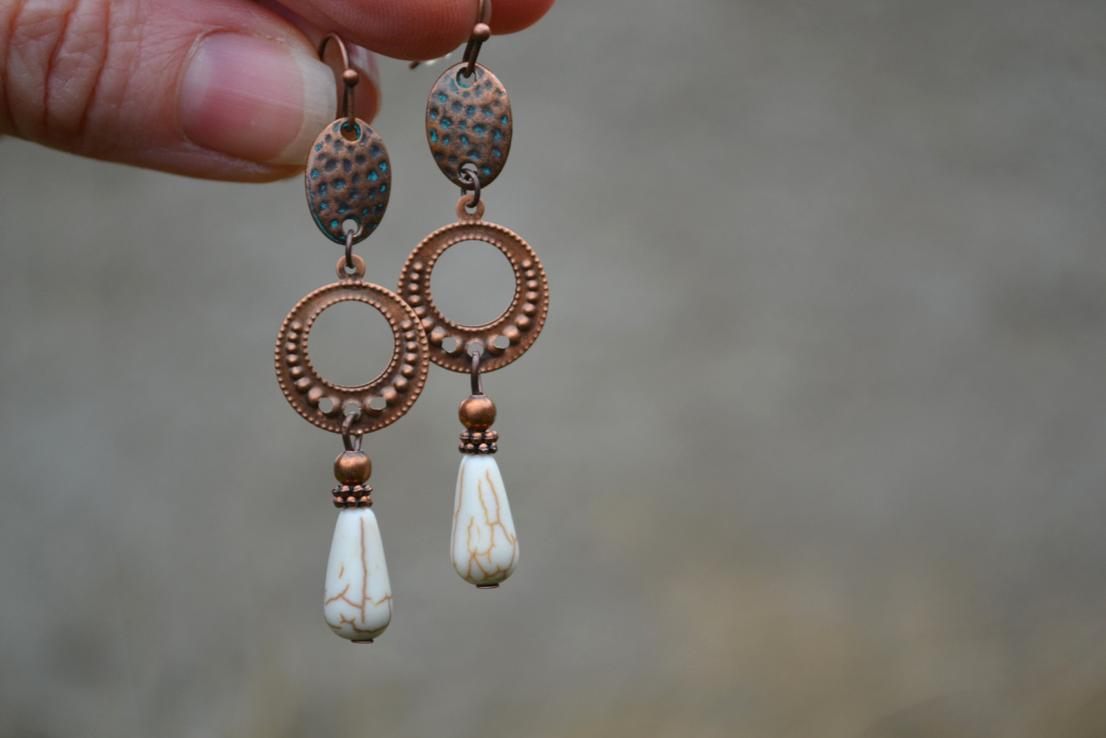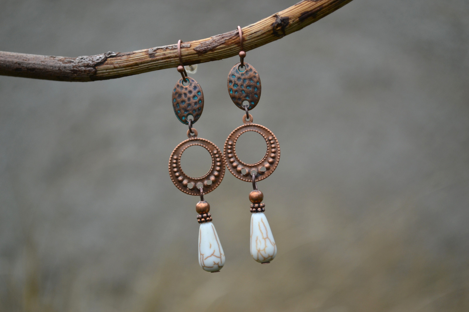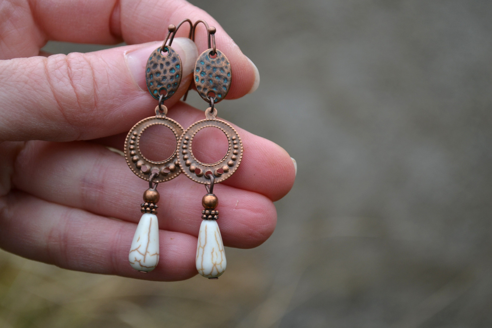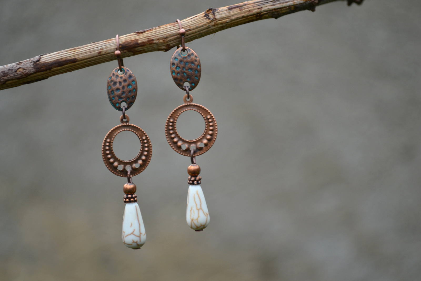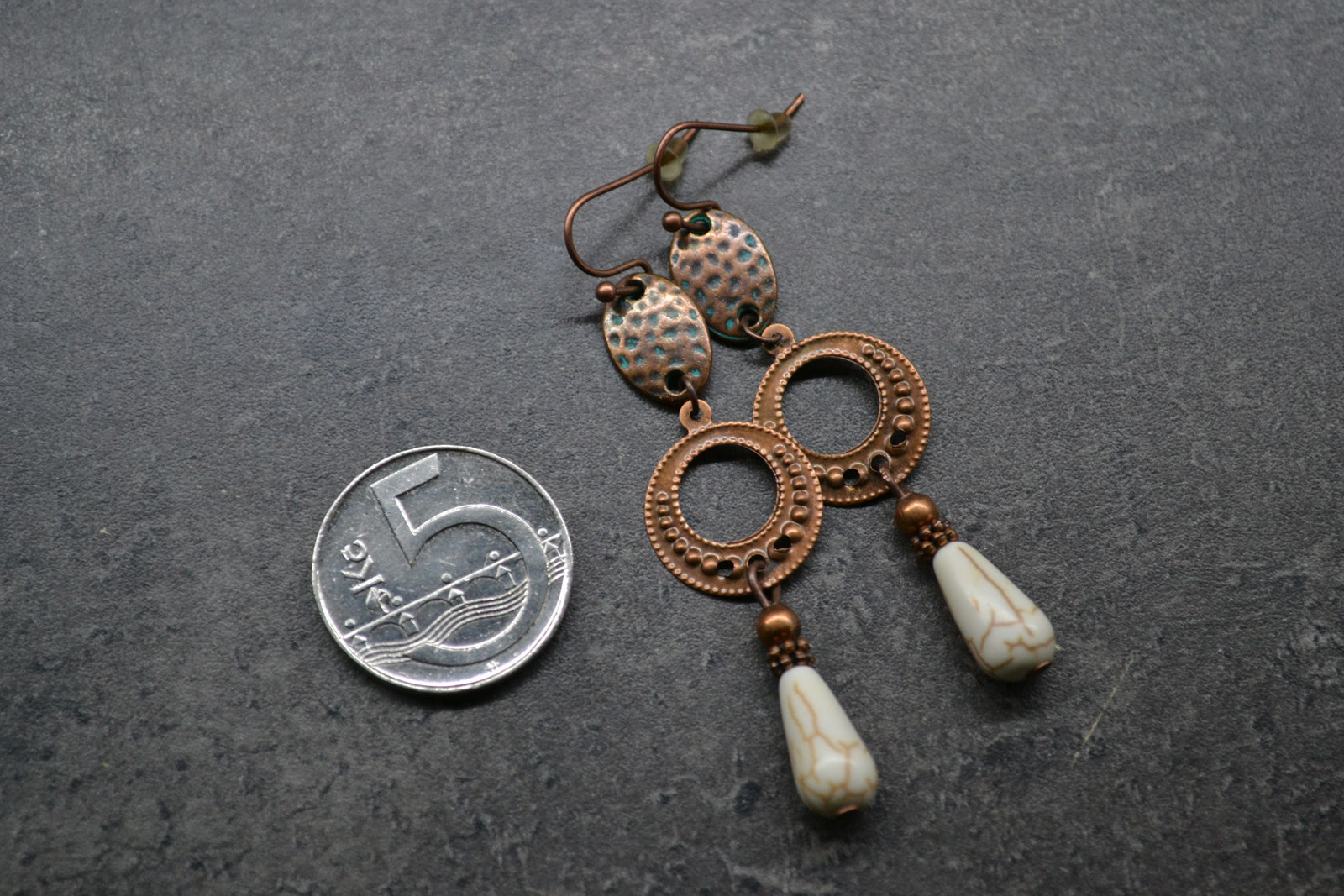 náušnice se zajímavými přívěsky doplněno korálky, komponenty a howlitem