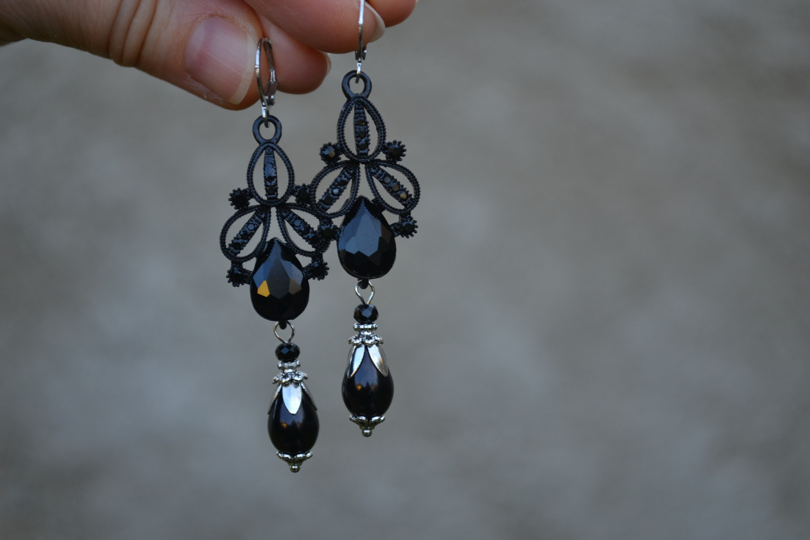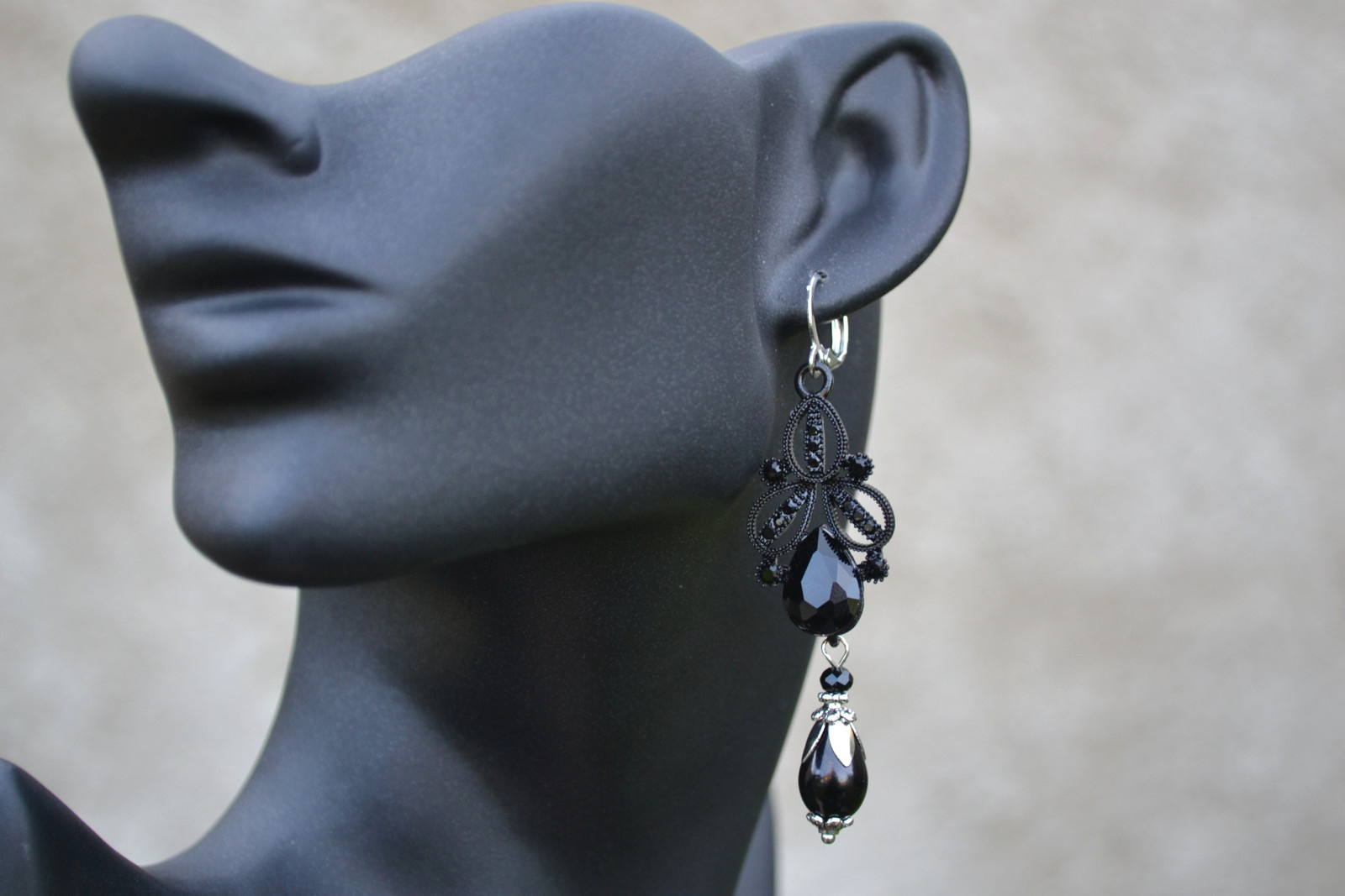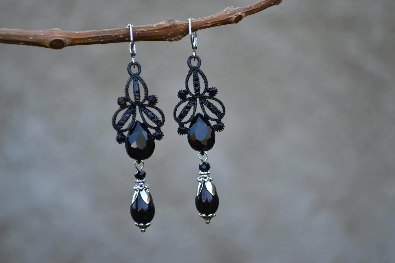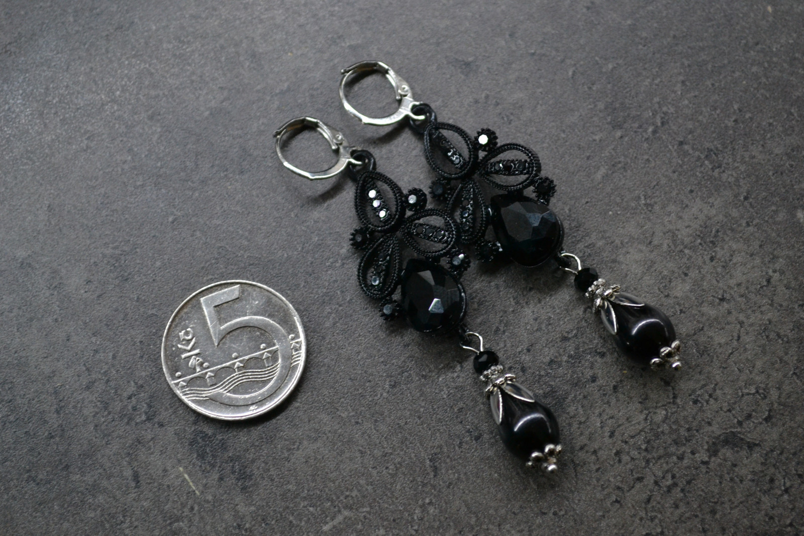 působivé náušnice s impozantním zdobeným přívěskem doplněný korálky, komponenty a kapičkami