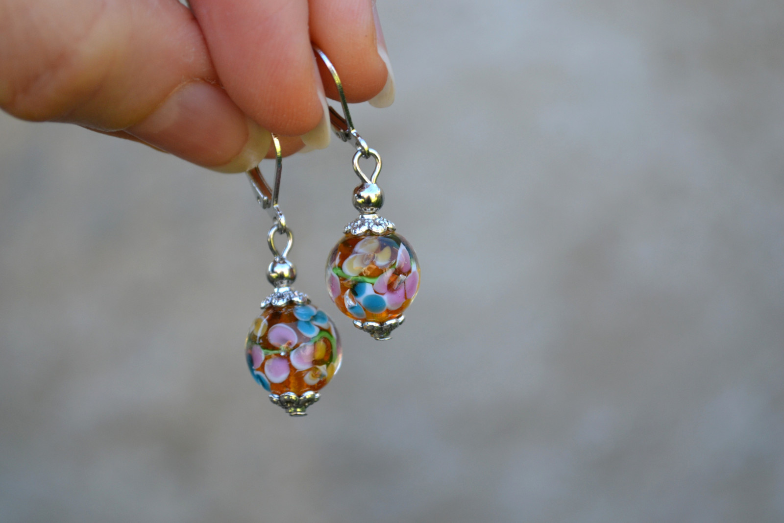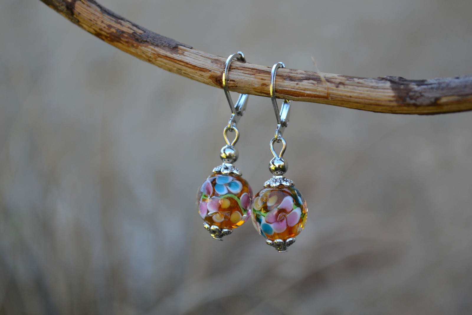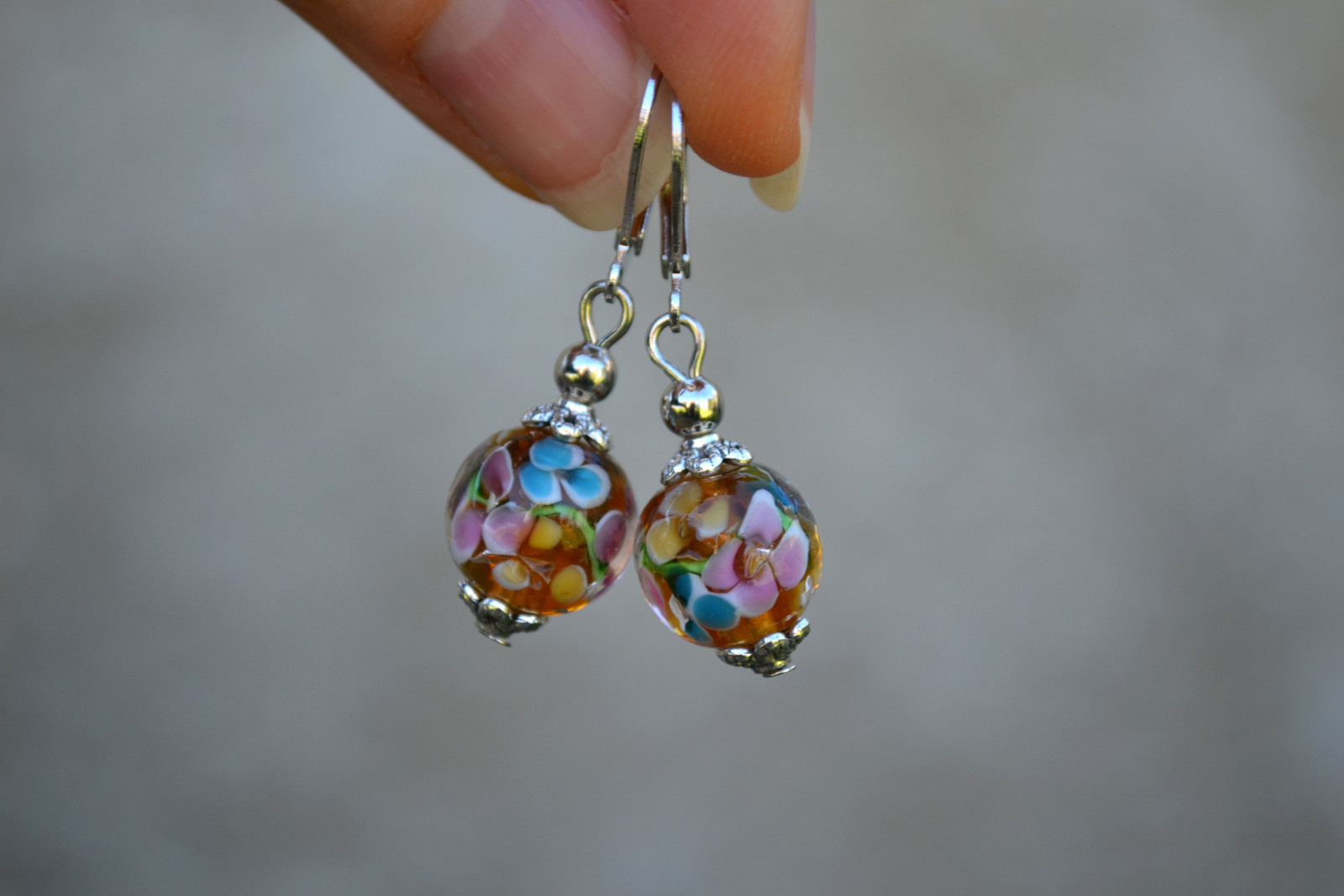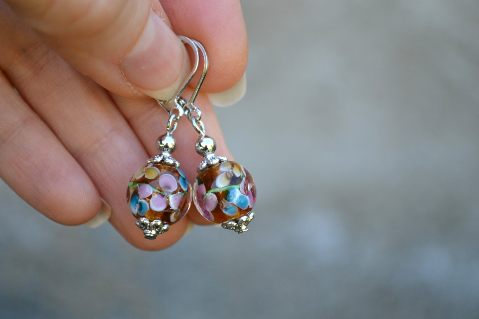 Náušnice s krásnými vinutými perličkami (každá je originálem) s korálky a komponenty, klasické zapínání