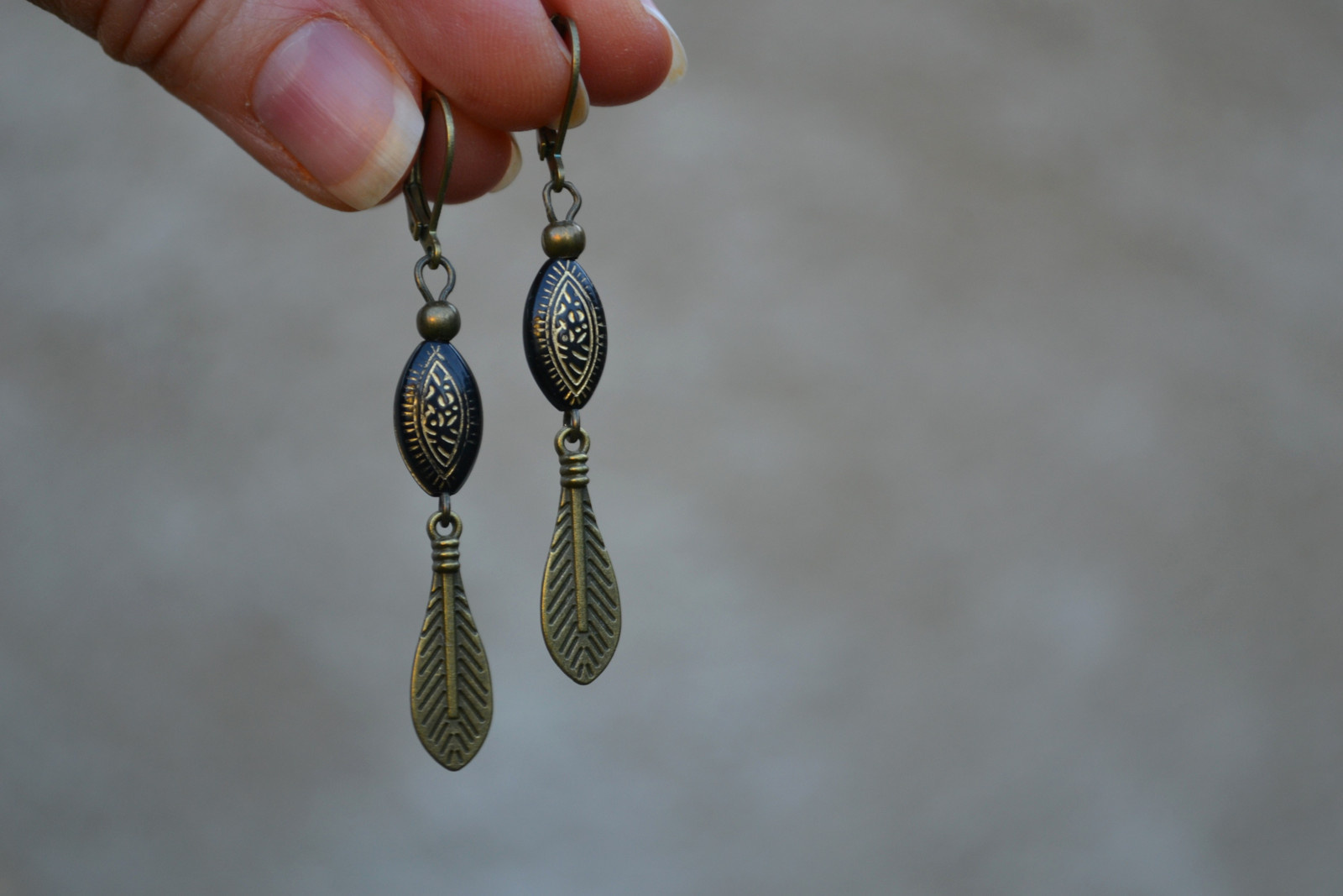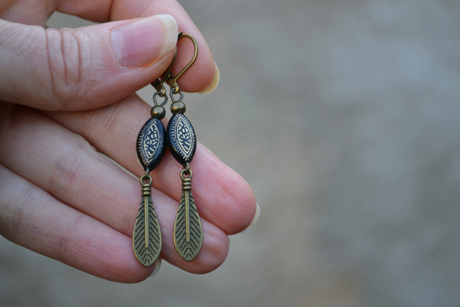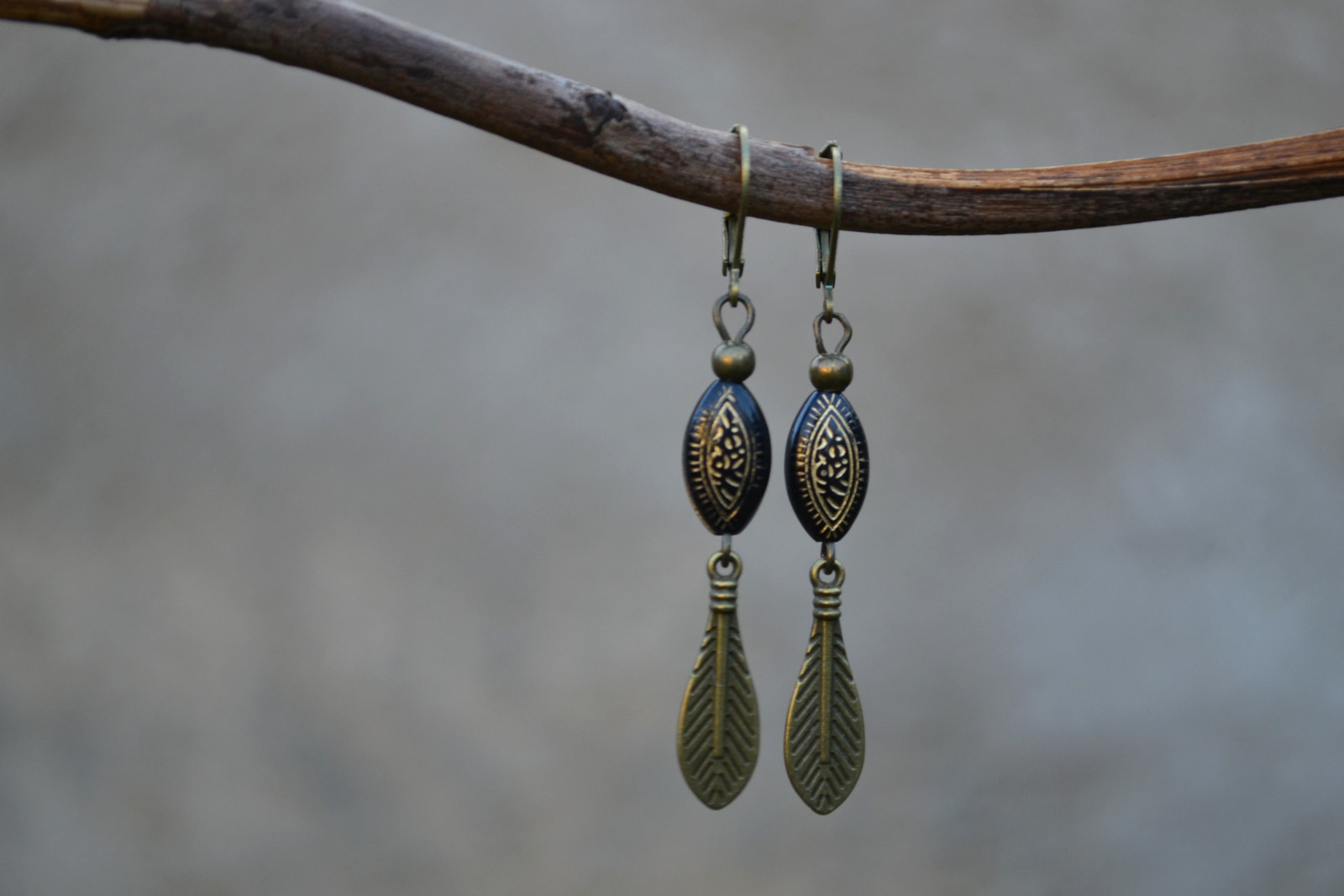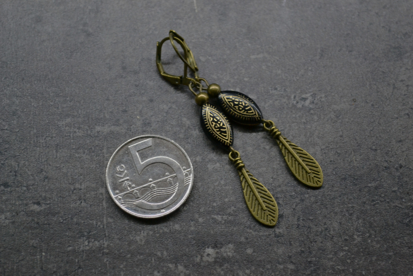 elegantní náušnice v kombinaci černé a bronzové