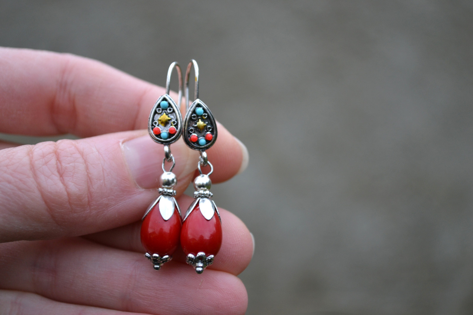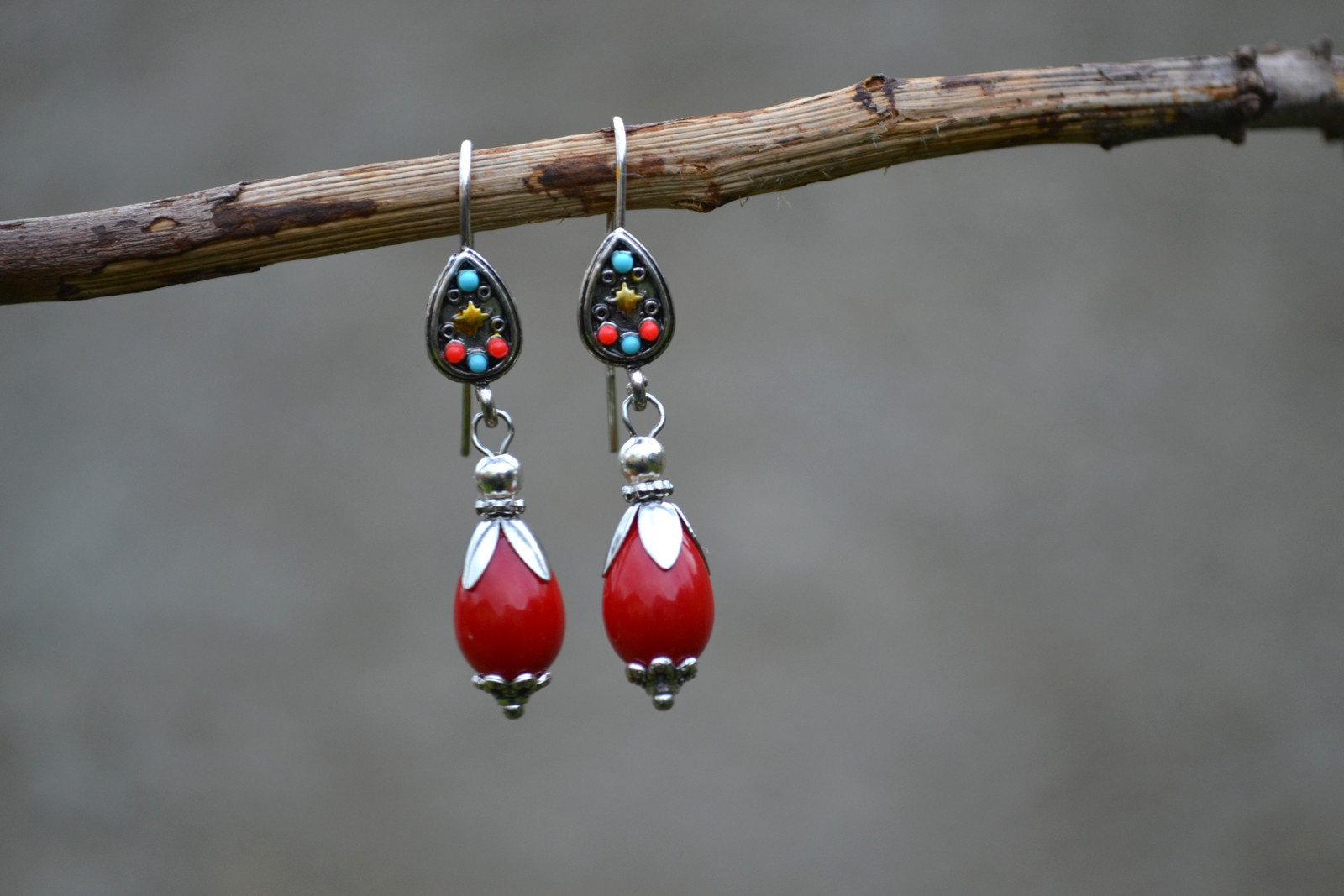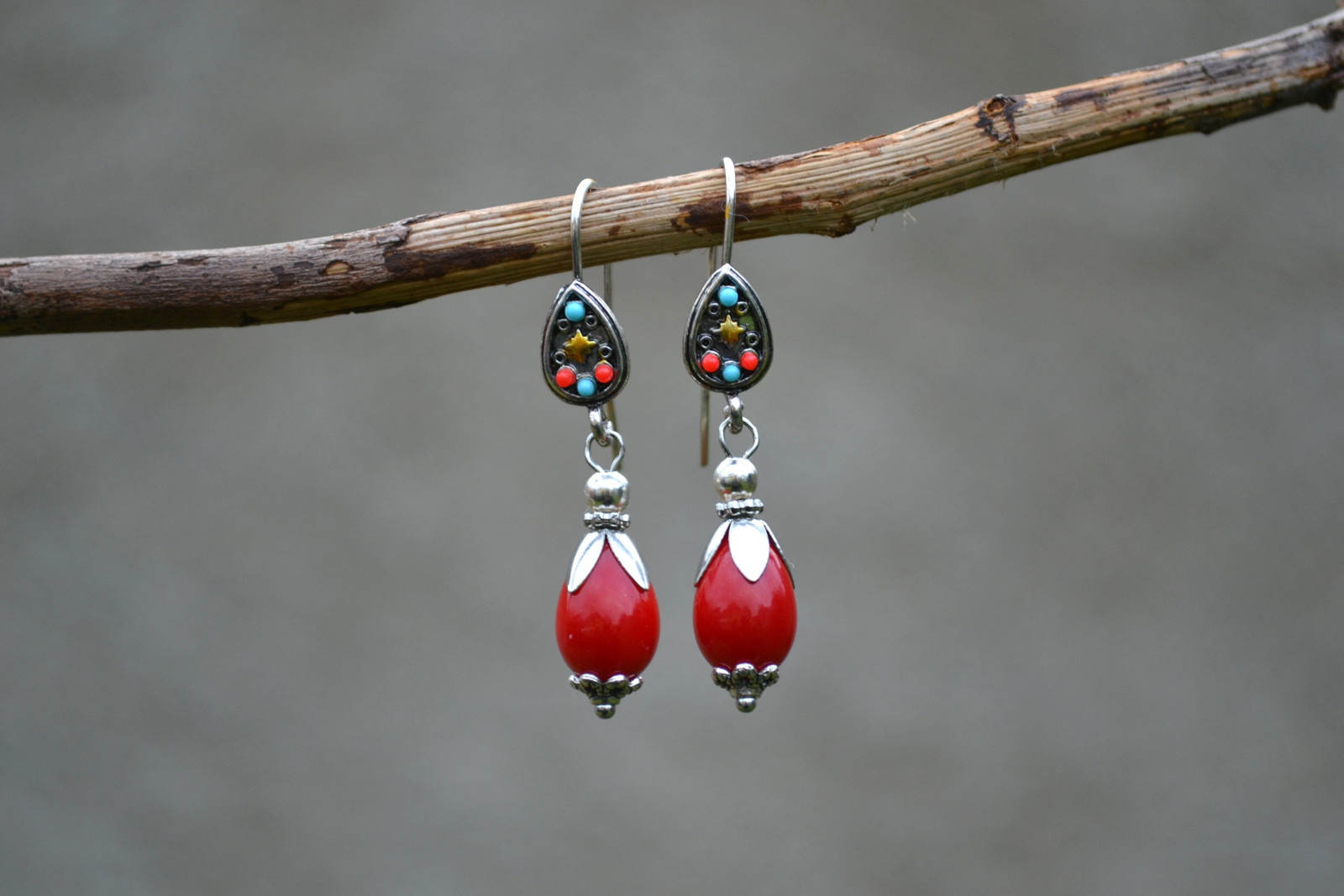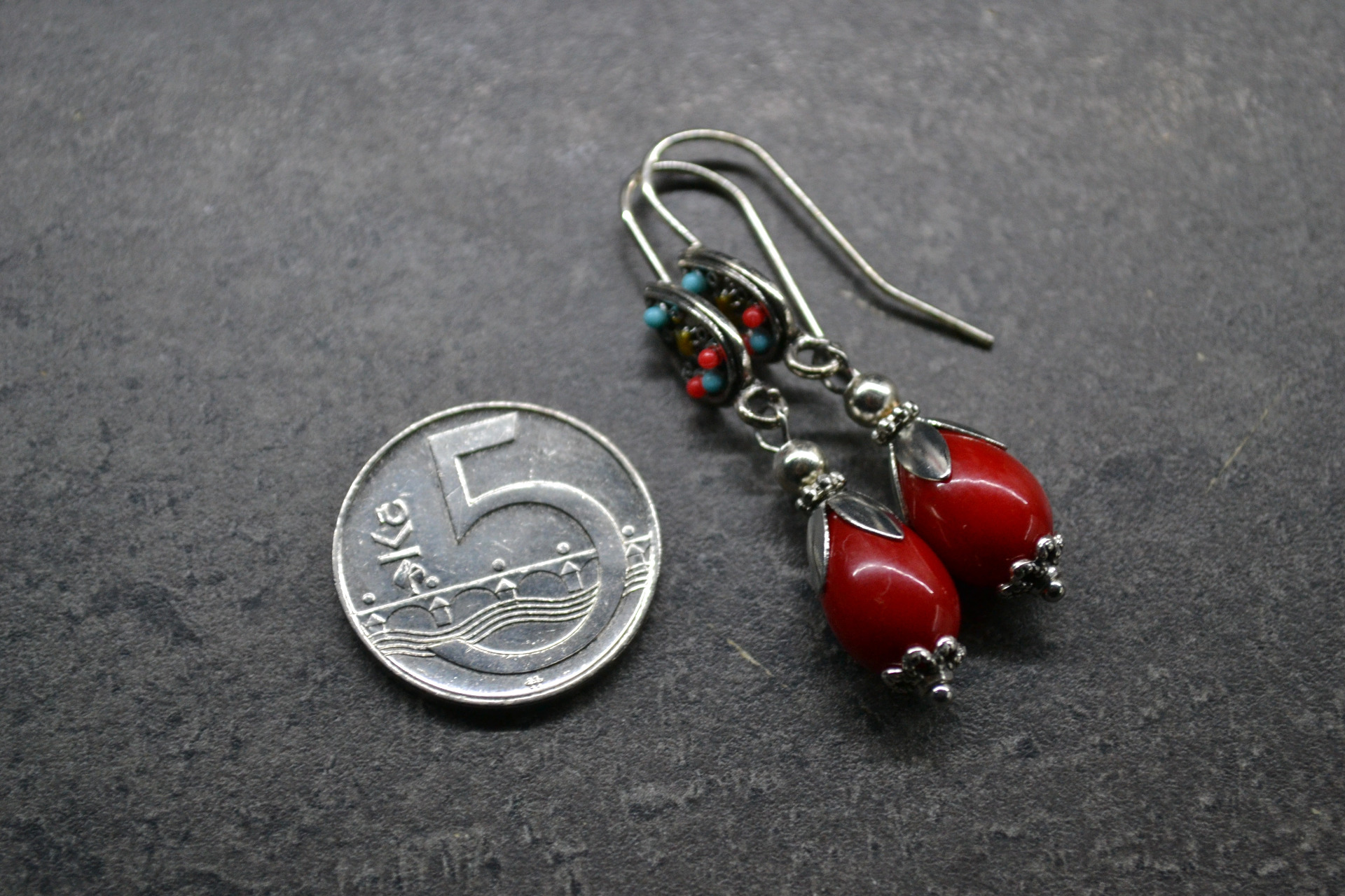 náušnice - s červenou kapkou