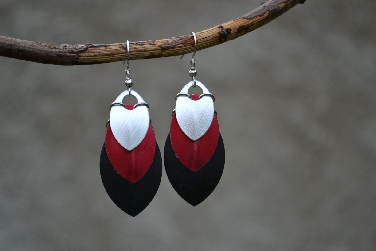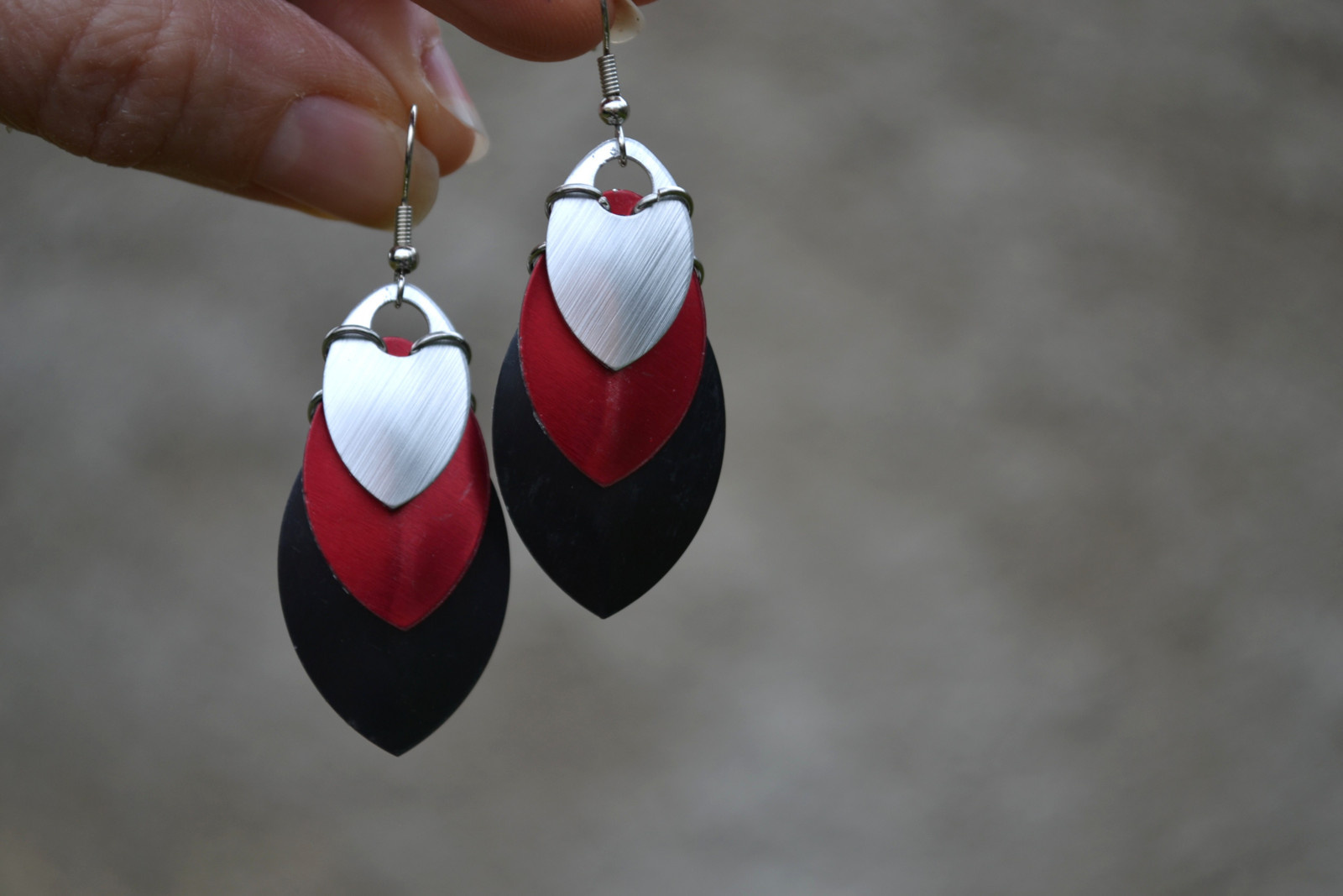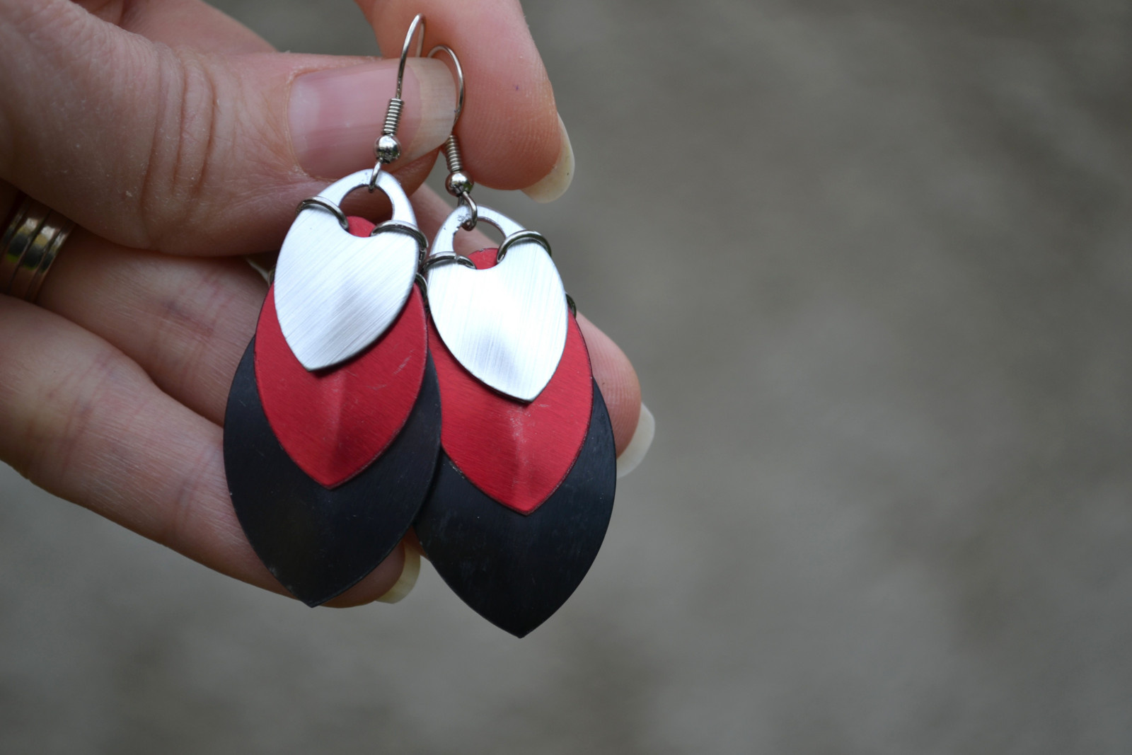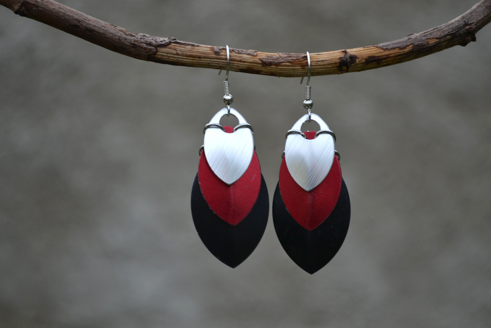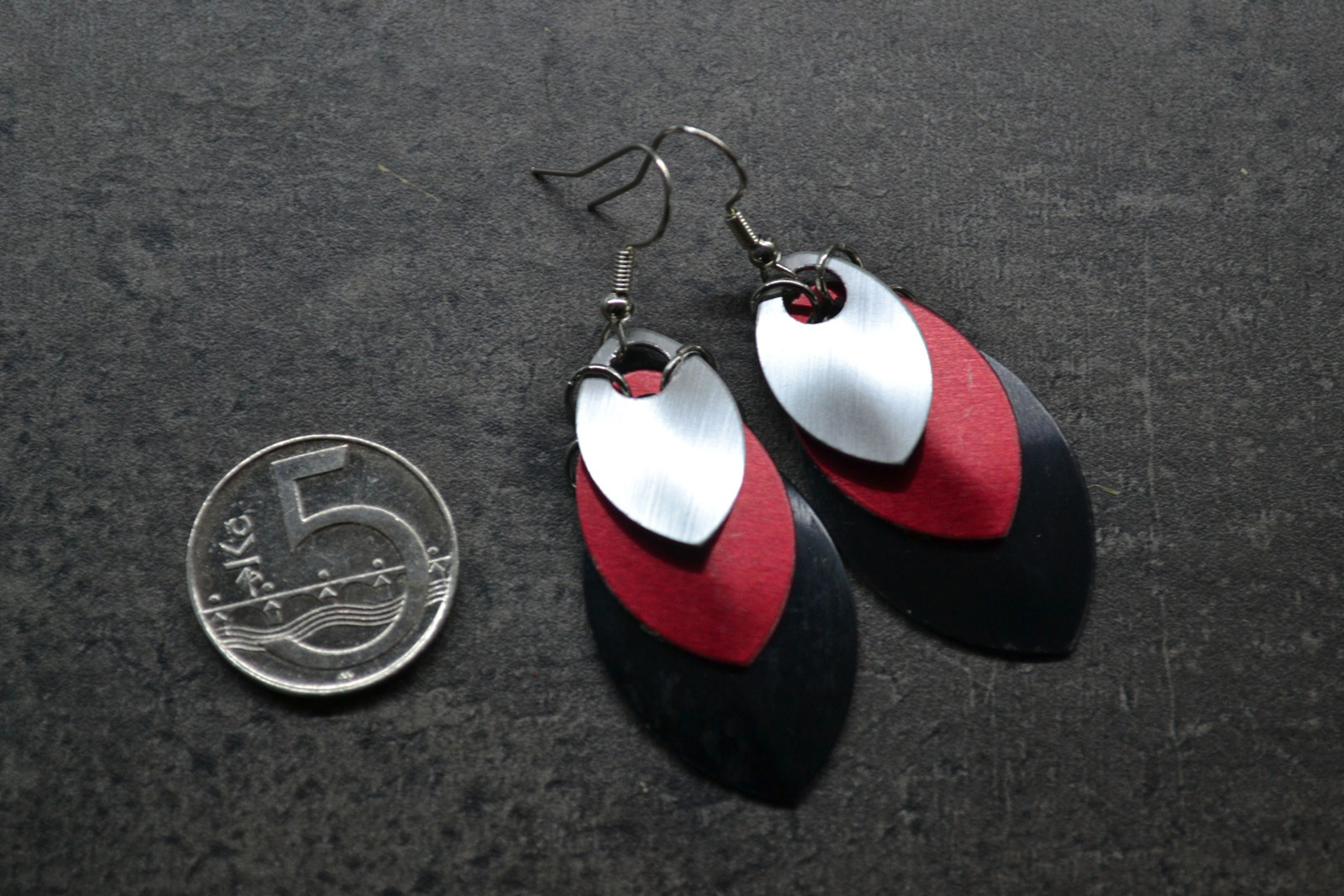 zajímavé, výrazné náušnice tvořené z různě velkých "šupinek"
