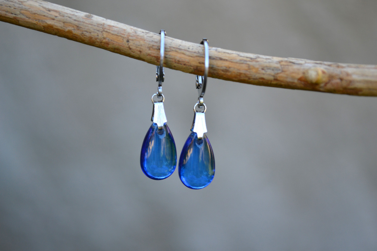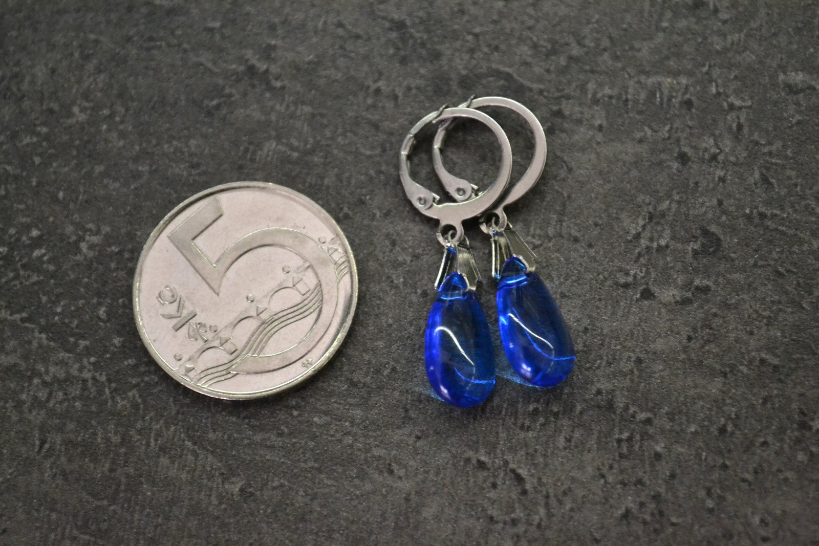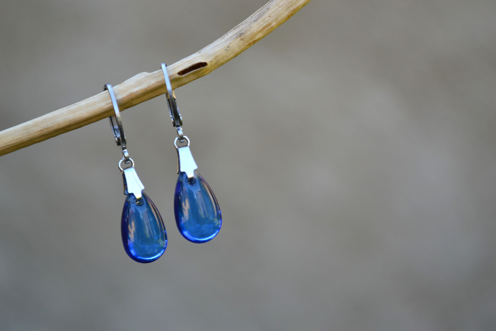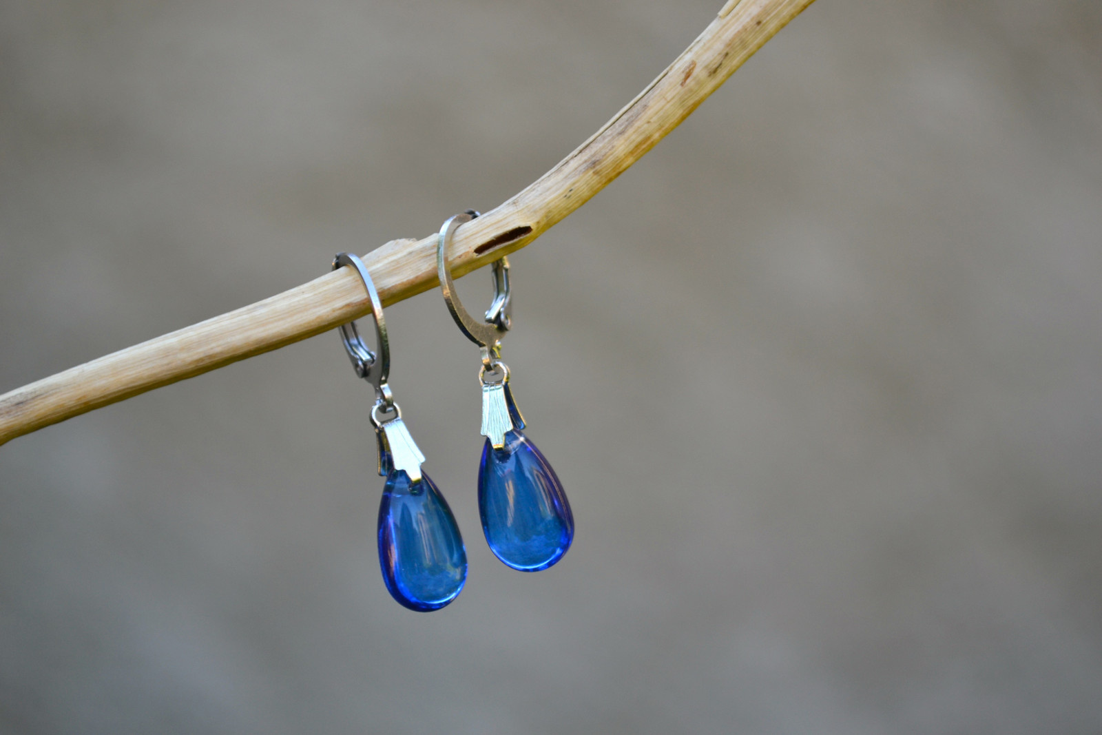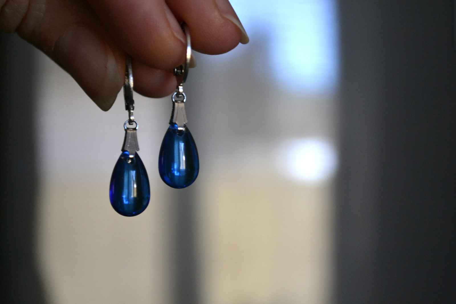 zarte Ohrringe mit einem Tropfen in einem wunderschönen dunkelblauen Farbton