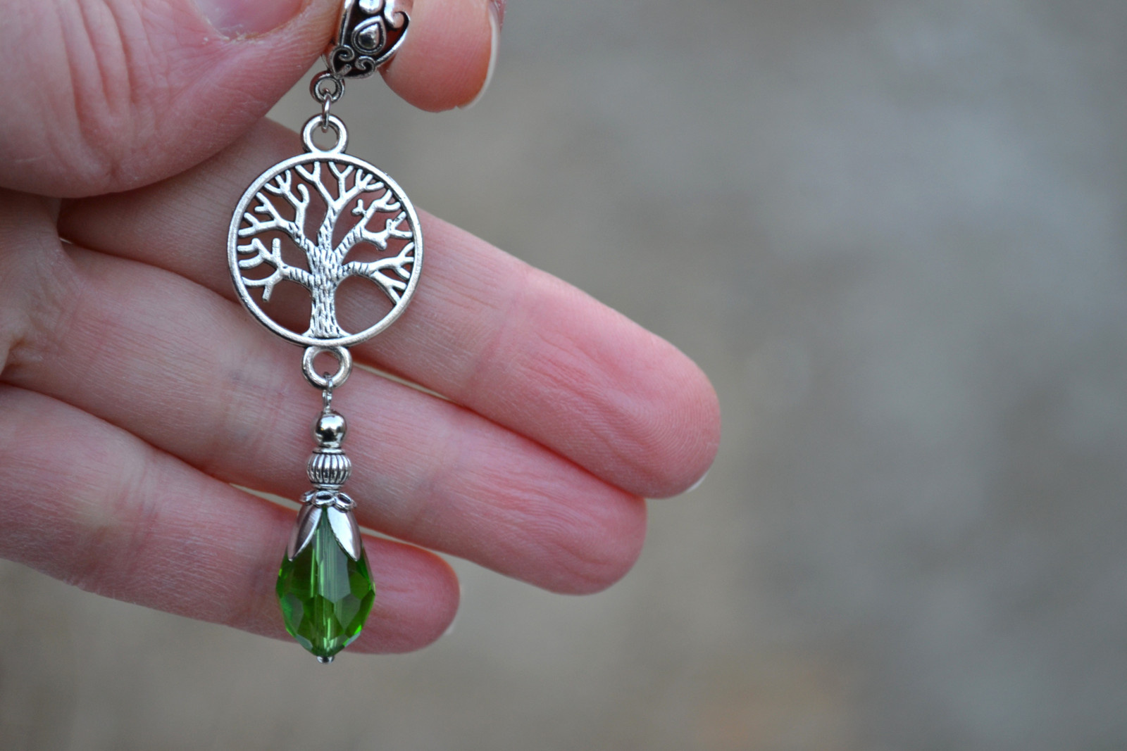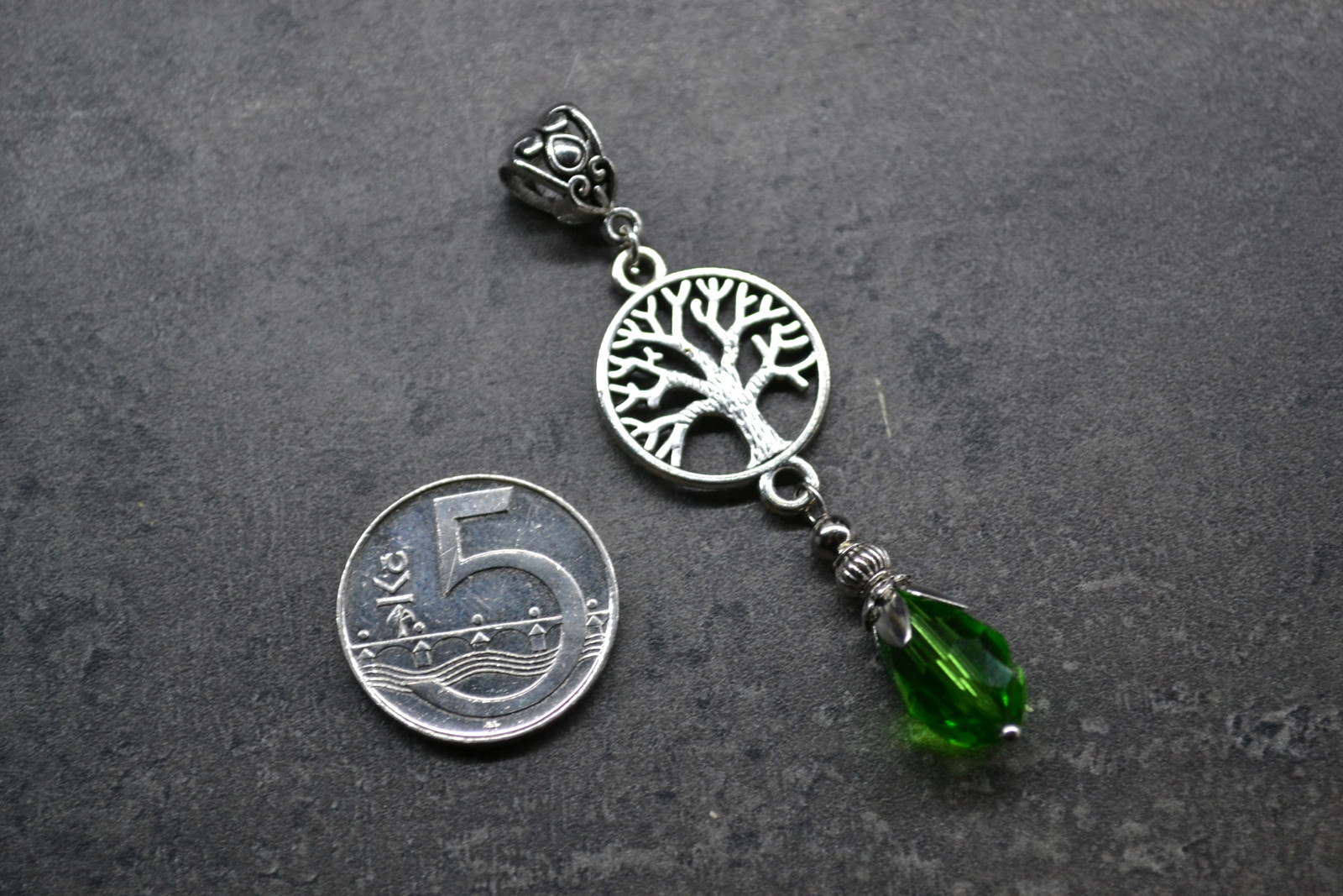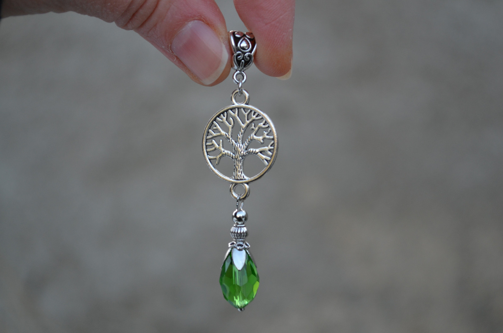 pendant ready to be strung on a chain (chain not included) with a tree motif complete with a drop