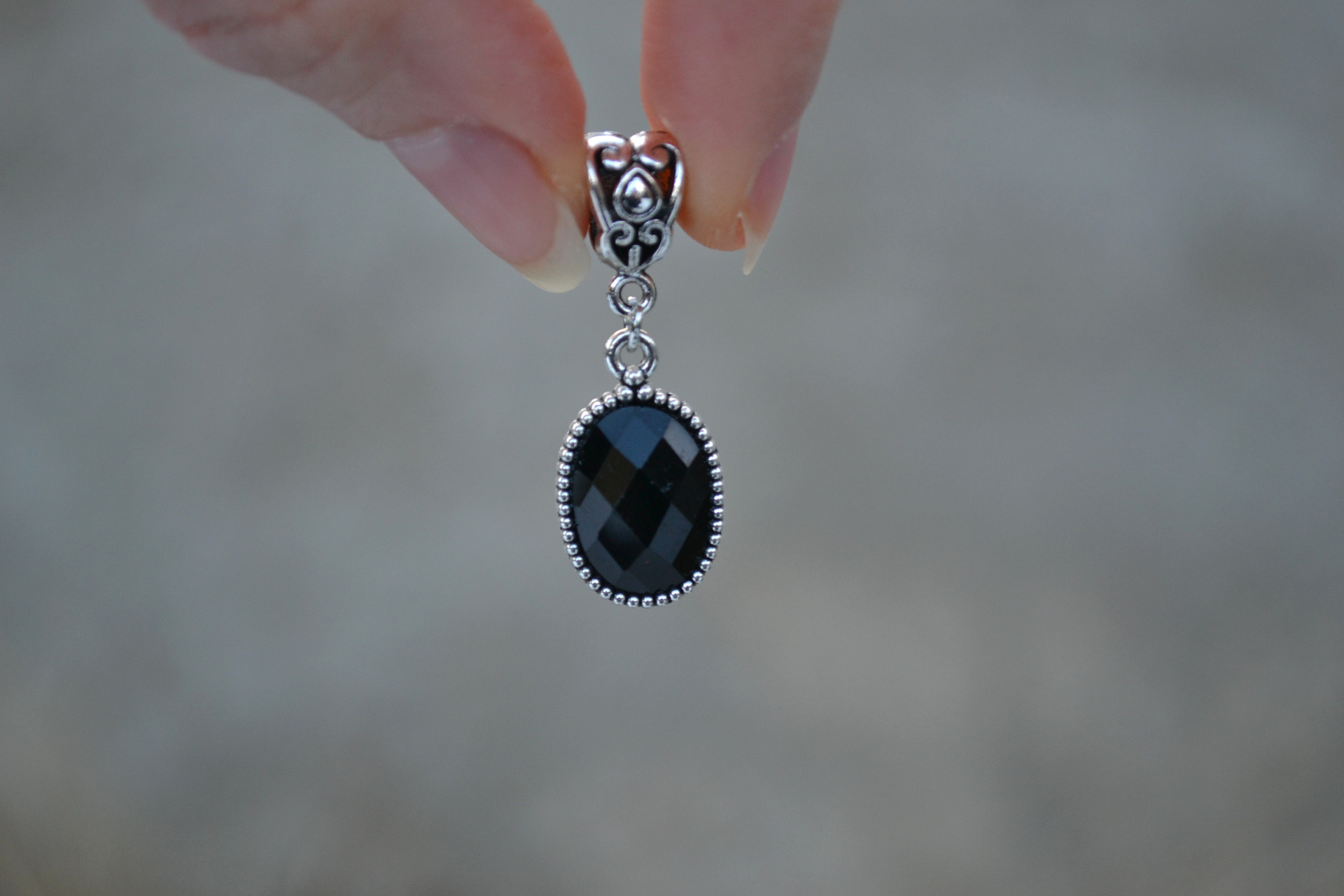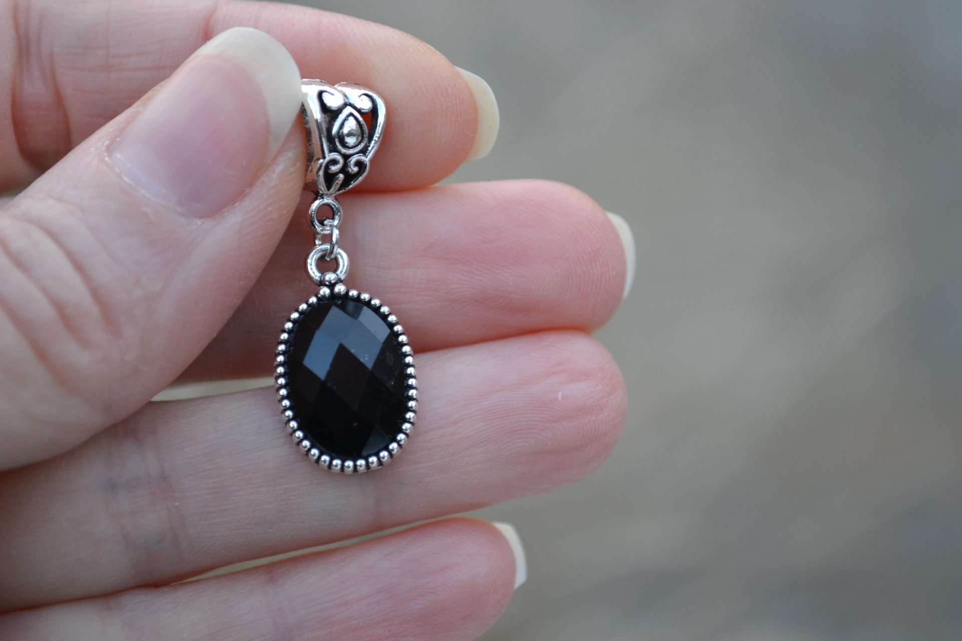 přívěsek připravený k provlečení na řetízek (řetízek není součástí nabídky) s přívěskem v černé