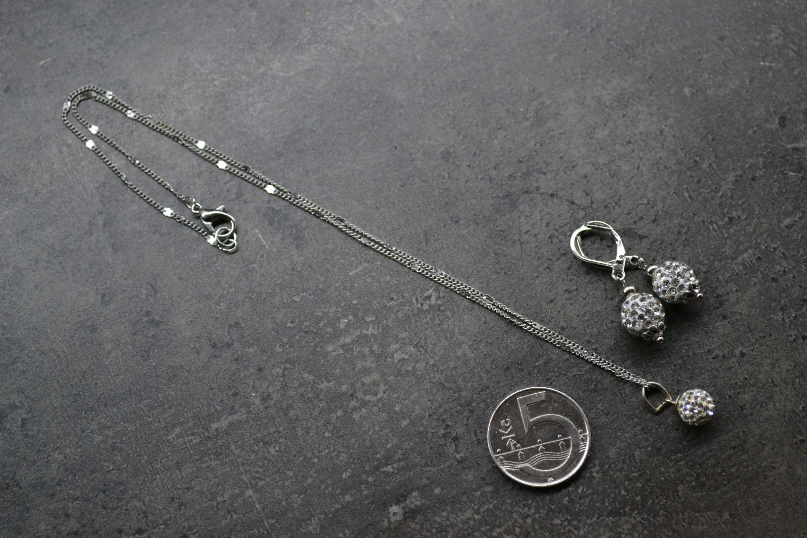 jemná souprava náušnic a náhrdelníku (řetízek je dlouhý cca. 43 cm včetně zapínání)