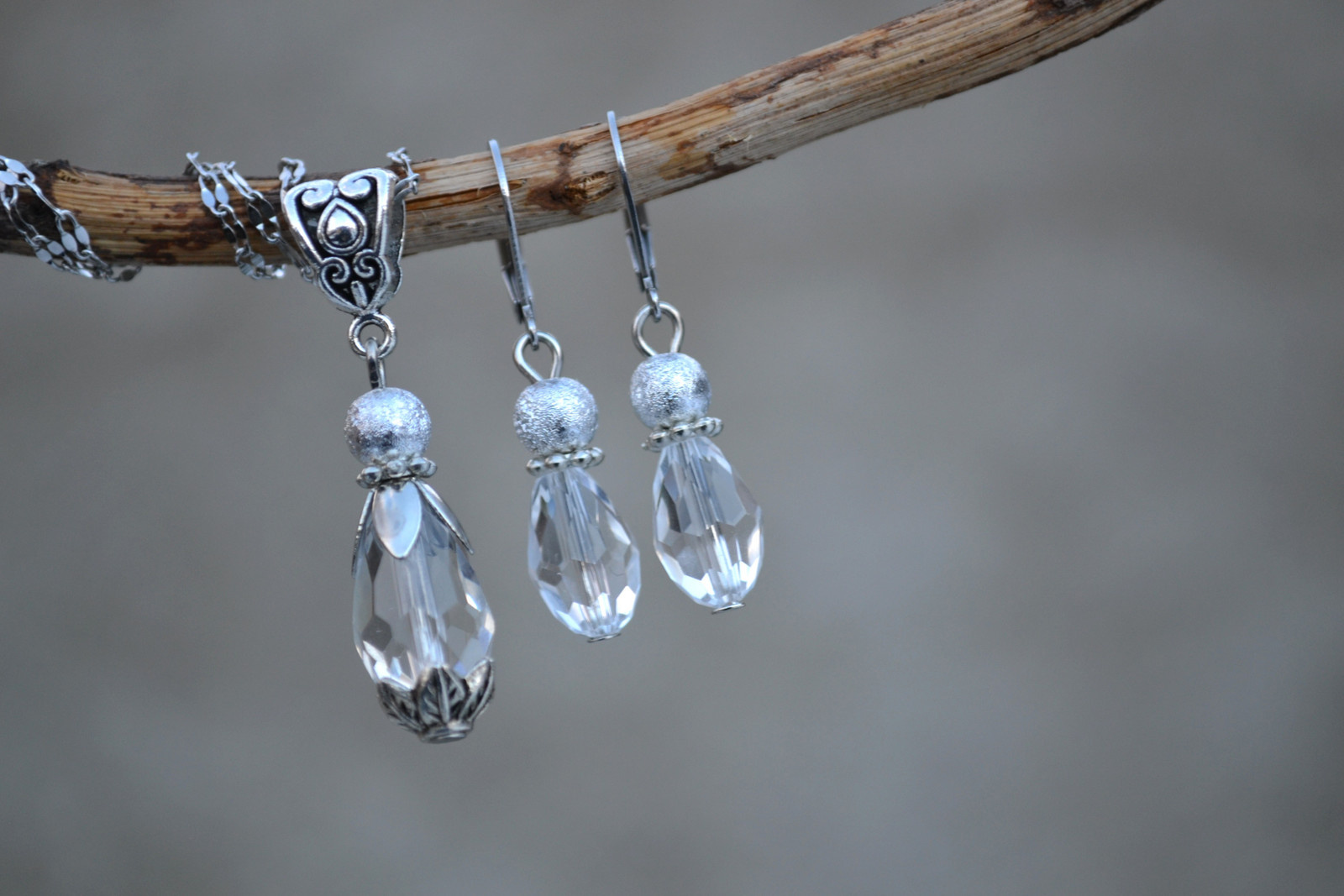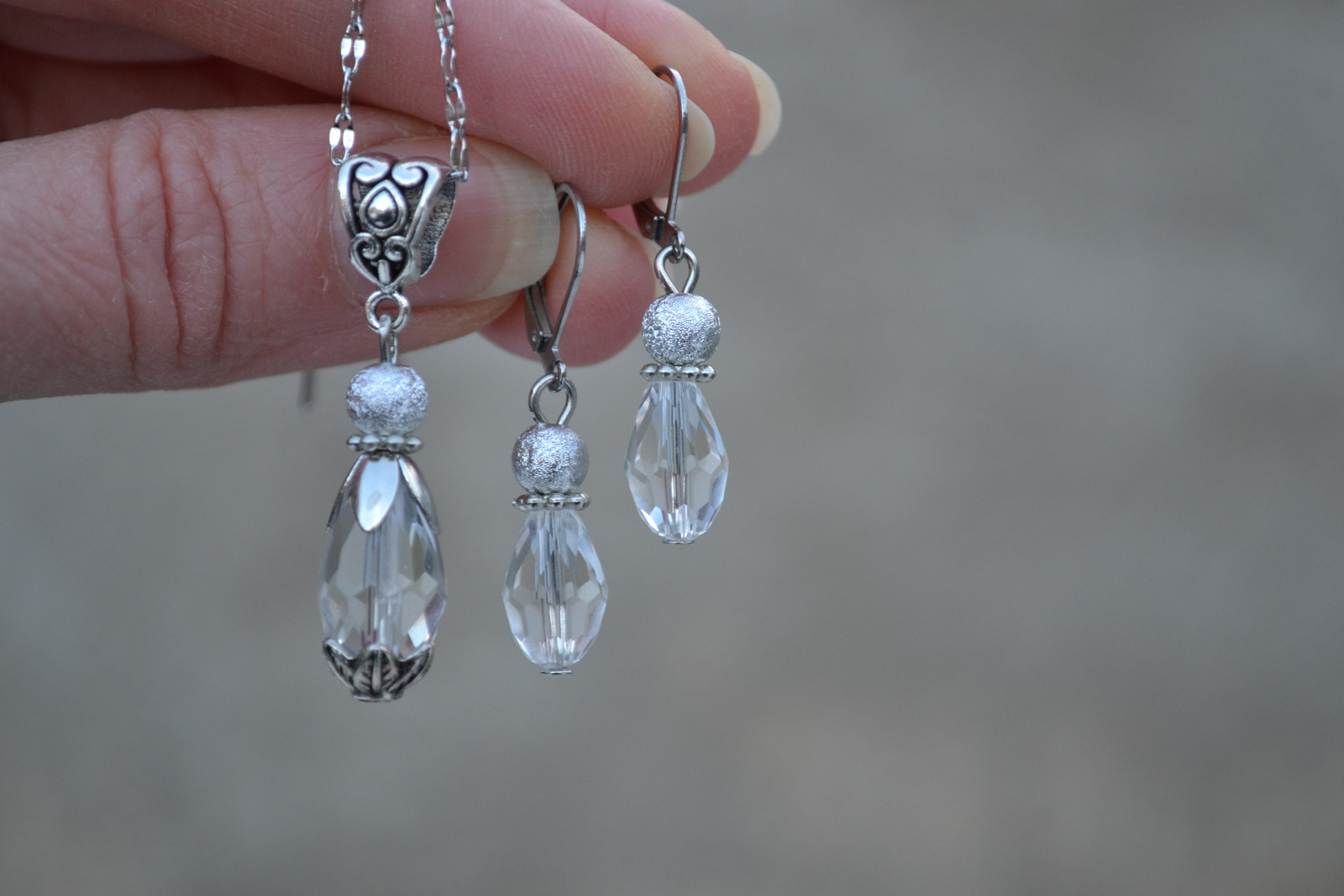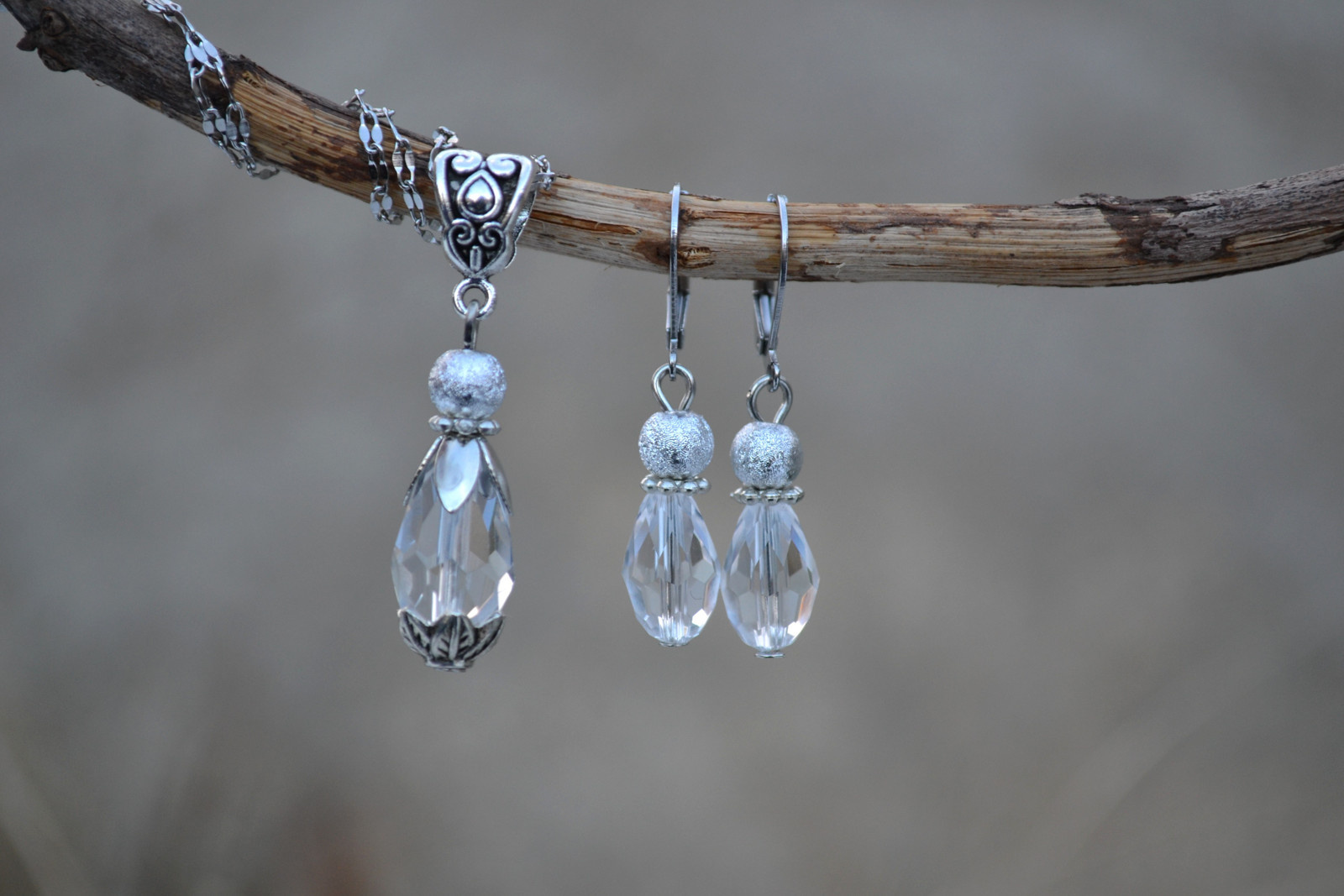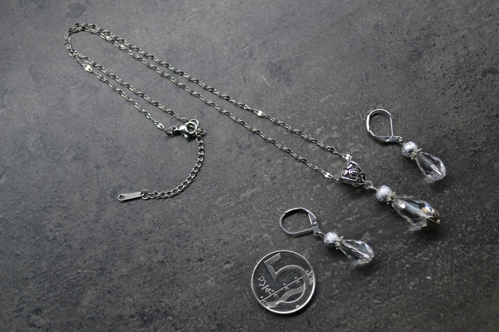elegant set consisting of a necklace (chain length is approx. 40.5 cm including clasp + extension chain) and earrings