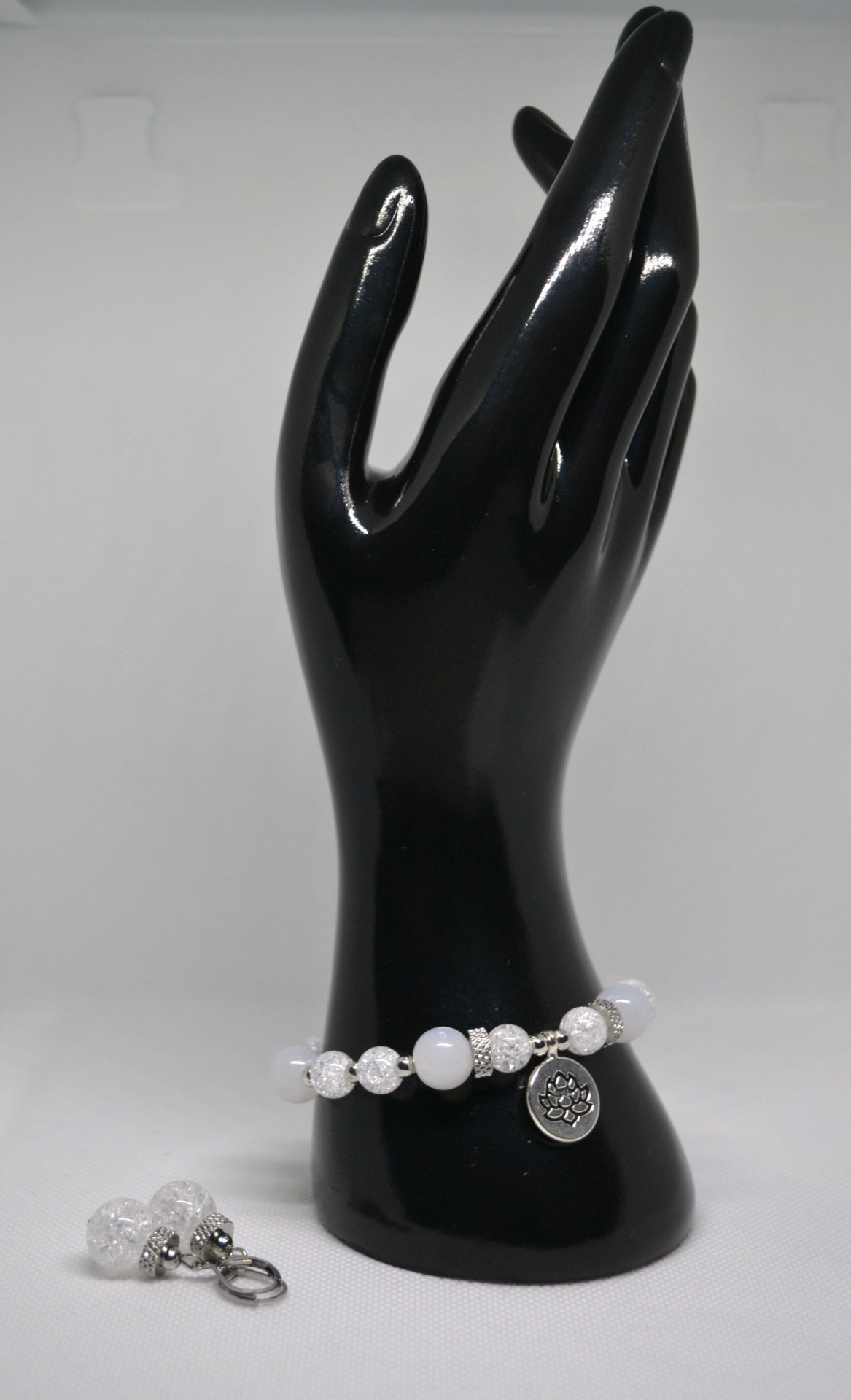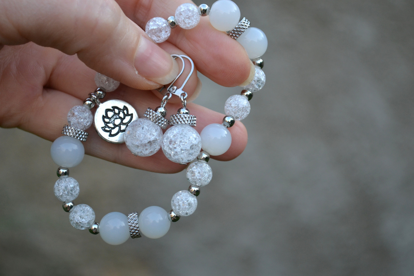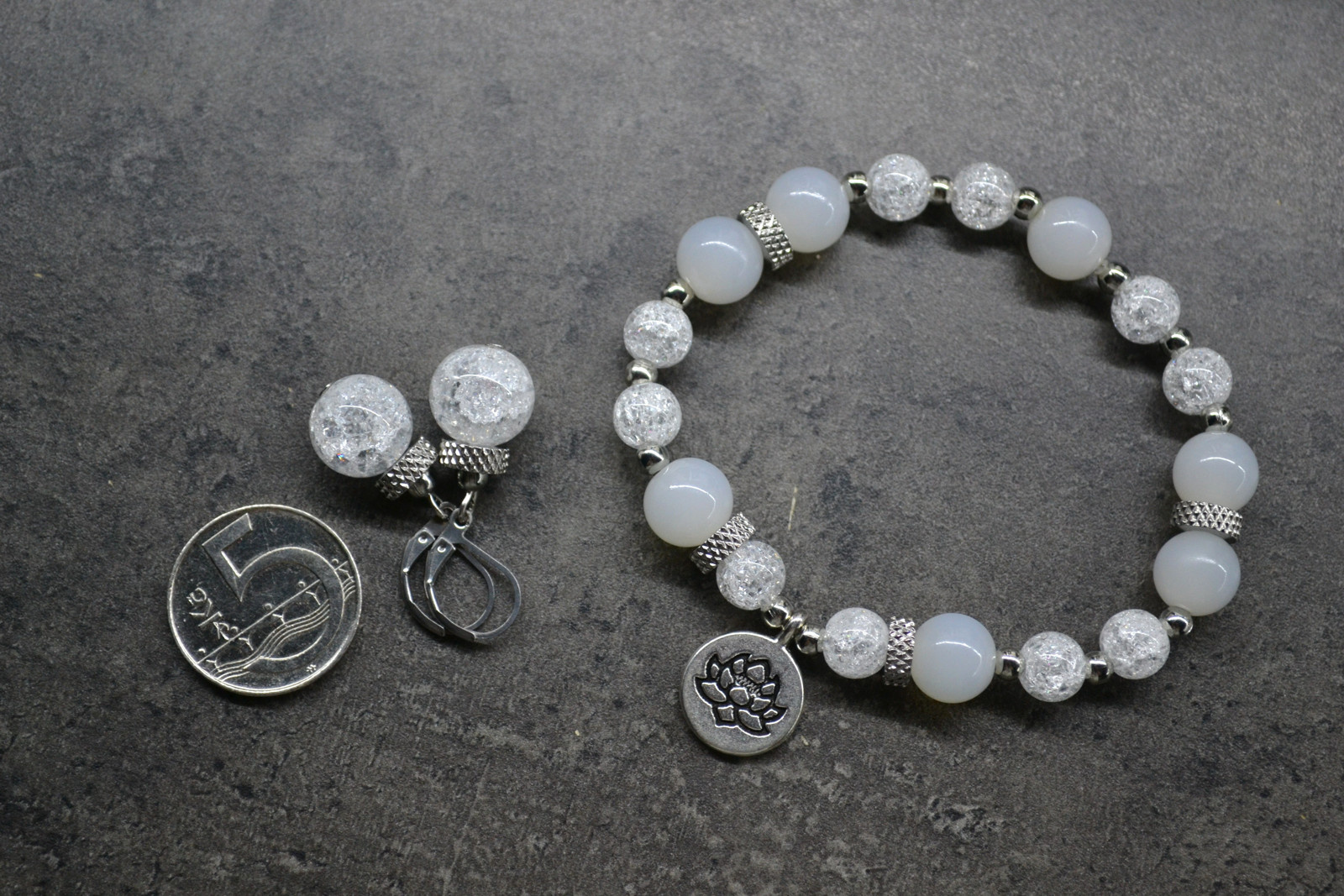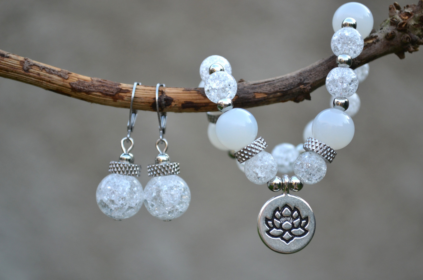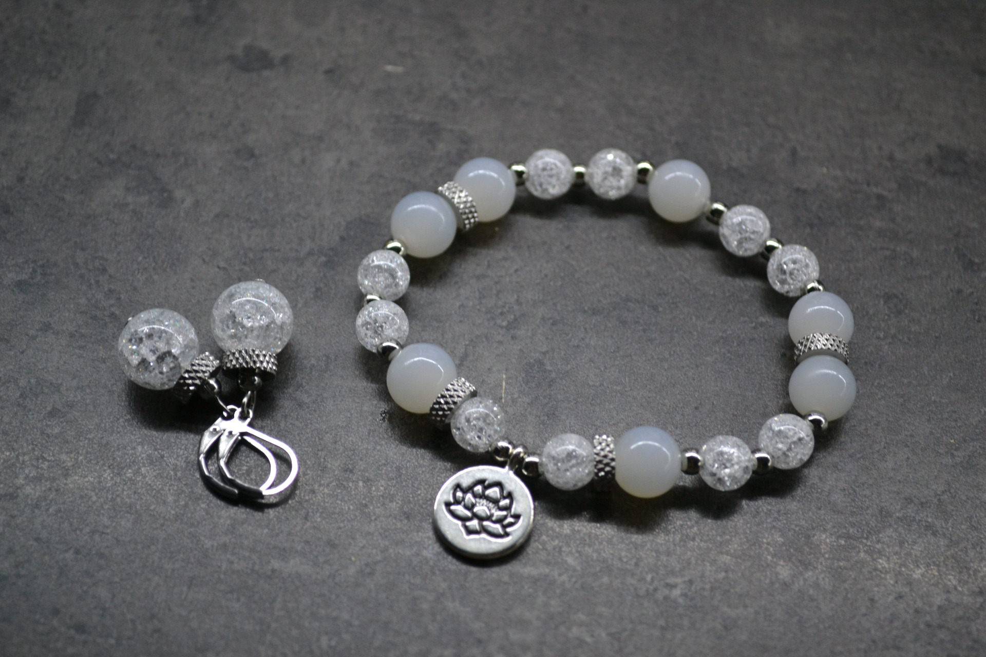Set bestehend aus Ohrringen und einem flexiblen Armband aus Perlen, Kristallelementen und Kristallkugeln (Umfang 17 cm)