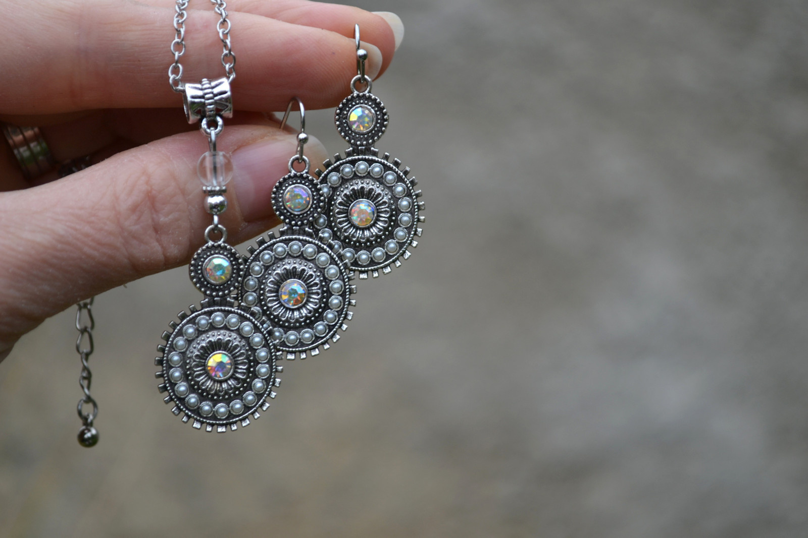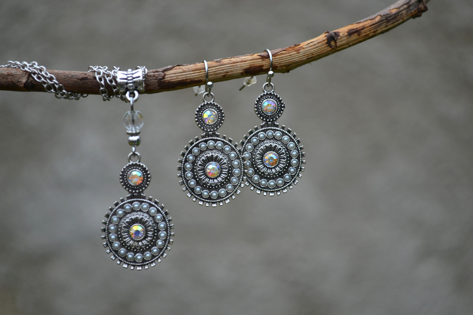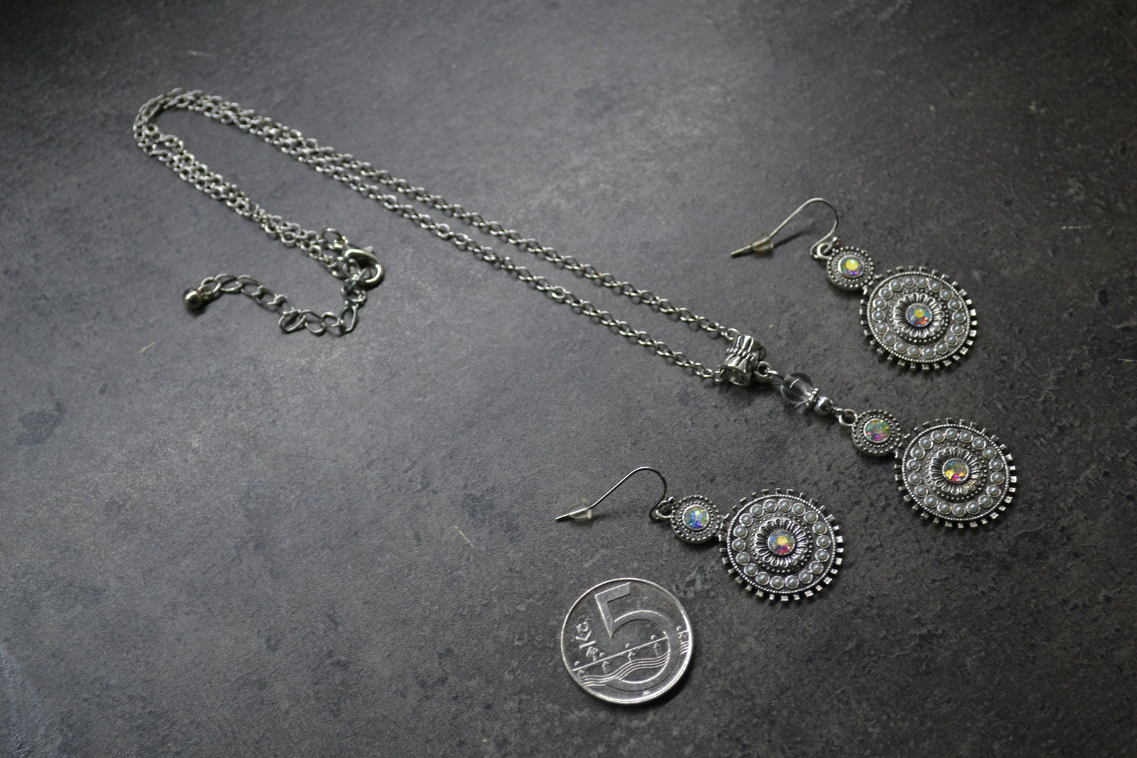 efektowny zestaw kolczyków i naszyjnika (długość łańcuszka to 39 cm łącznie z zapięciem + łańcuszkiem przedłużającym)