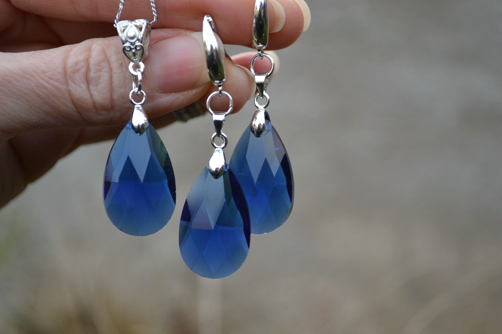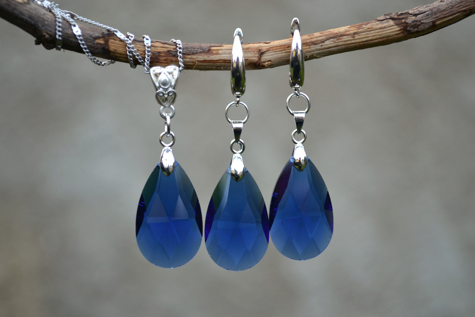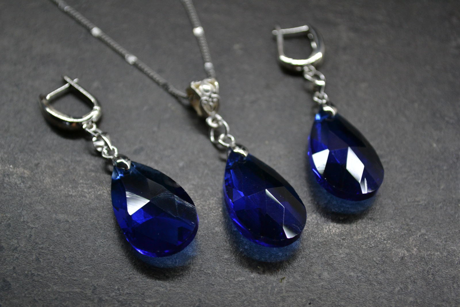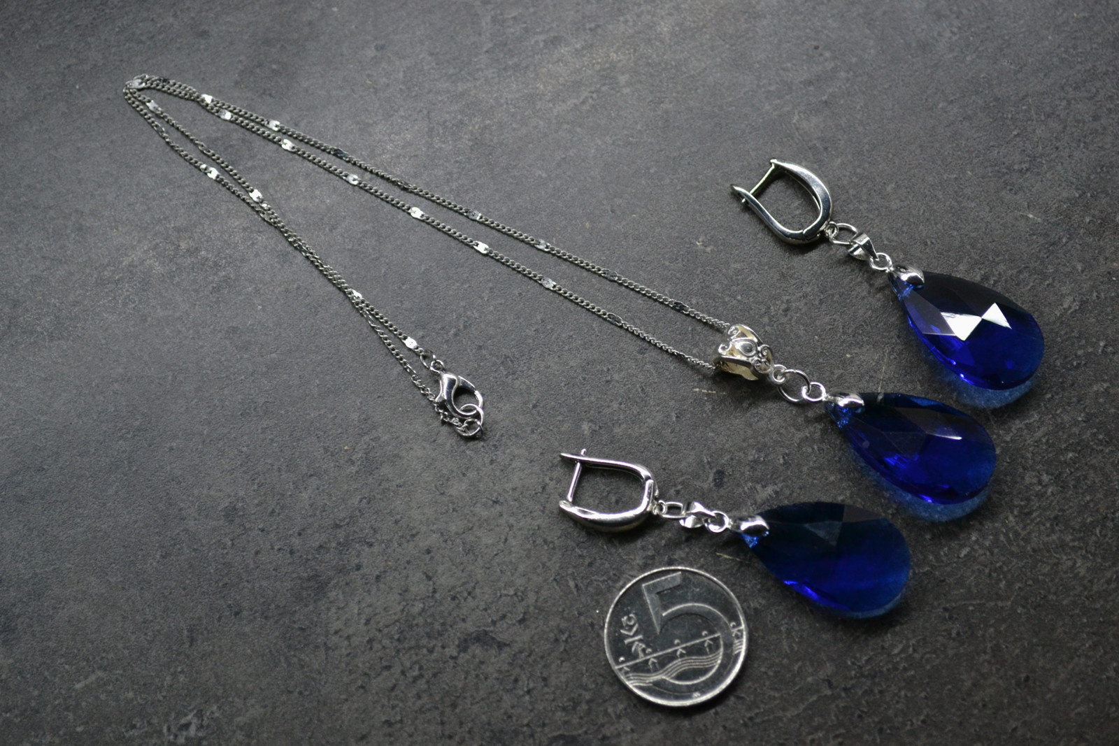 Zestaw składający się z kolczyków i naszyjnika (długość łańcuszka ok. 43 cm z zapięciem) w efektownym odcieniu granatu